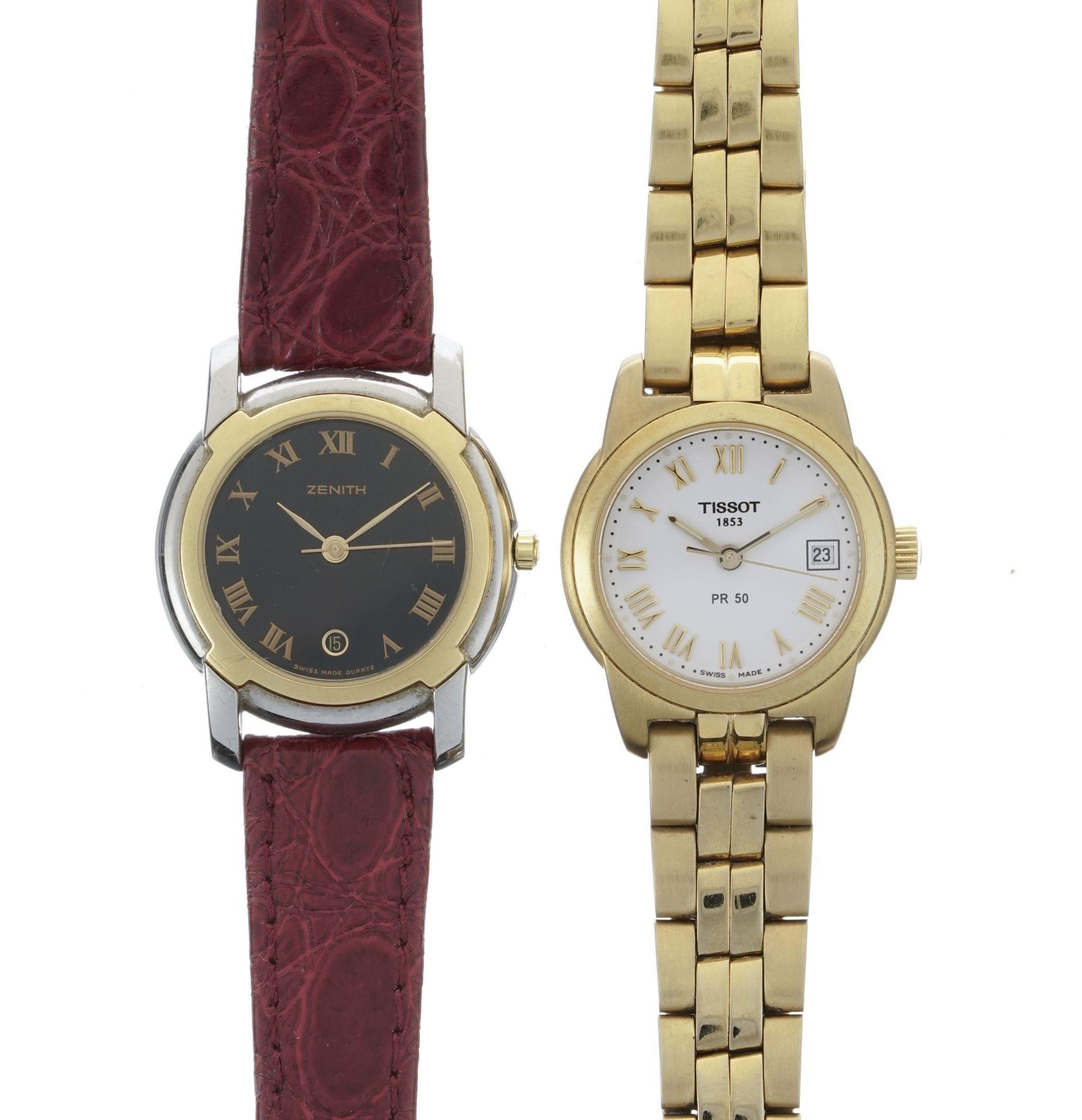 3055. Tissot et Zénith, une montre bracelet et une montre à quartz