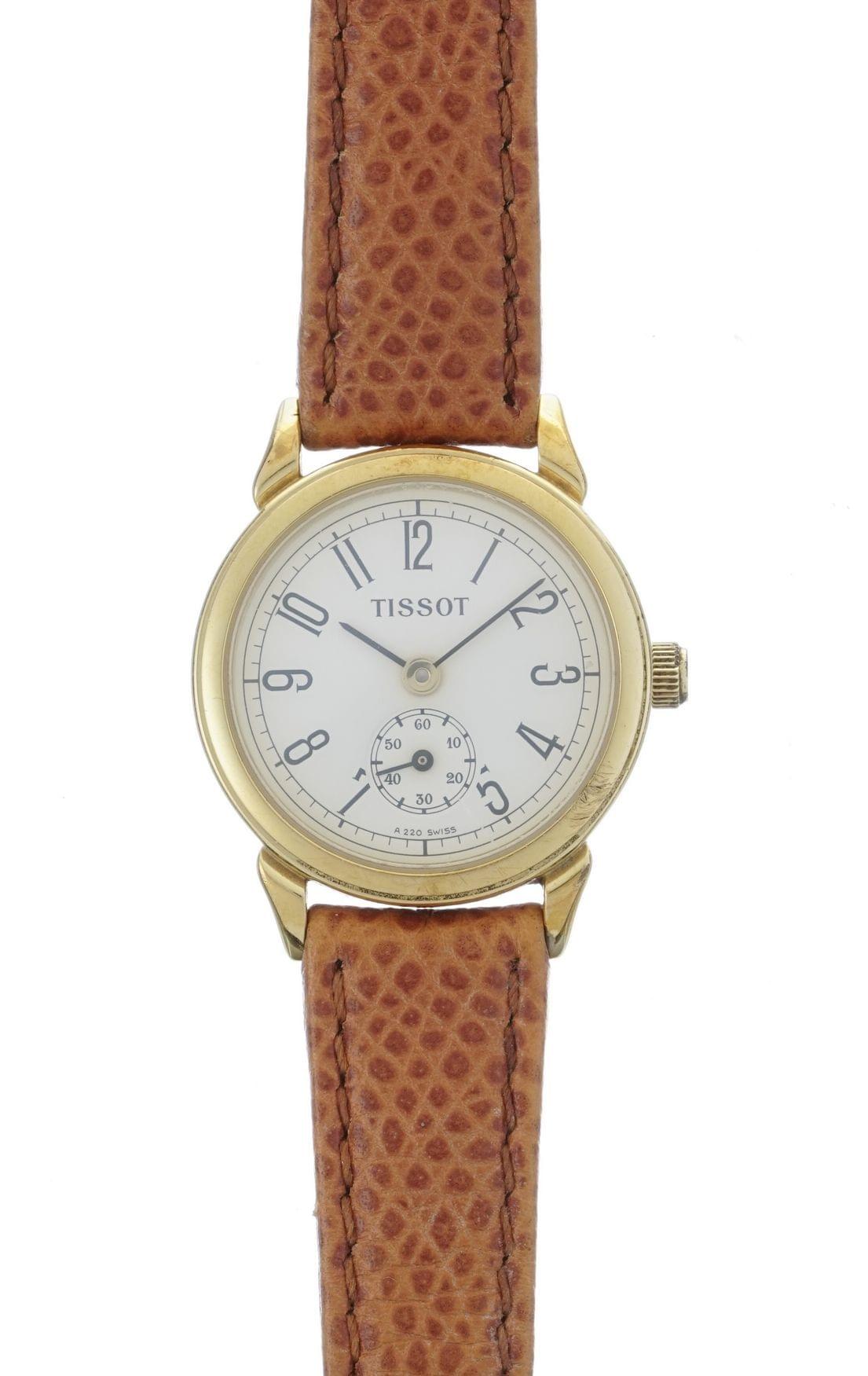 Cadran crème, aiguilles et chiffres arabes noirs, aiguilles des secondes à 6h, métal doré, D 22 mm