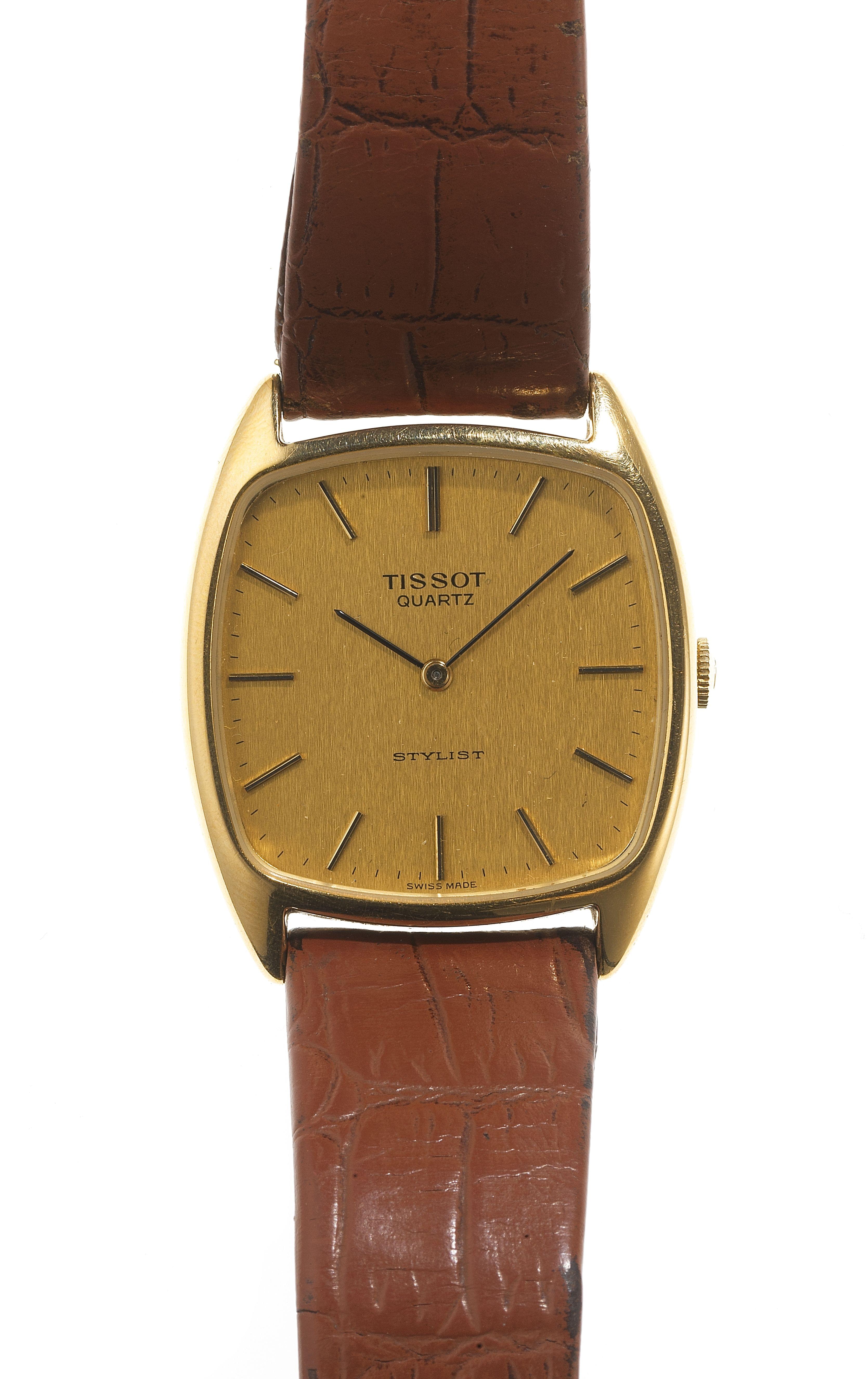 Cadran doré, aiguilles et index bâtons noirs, métal doré, 31x30 mm