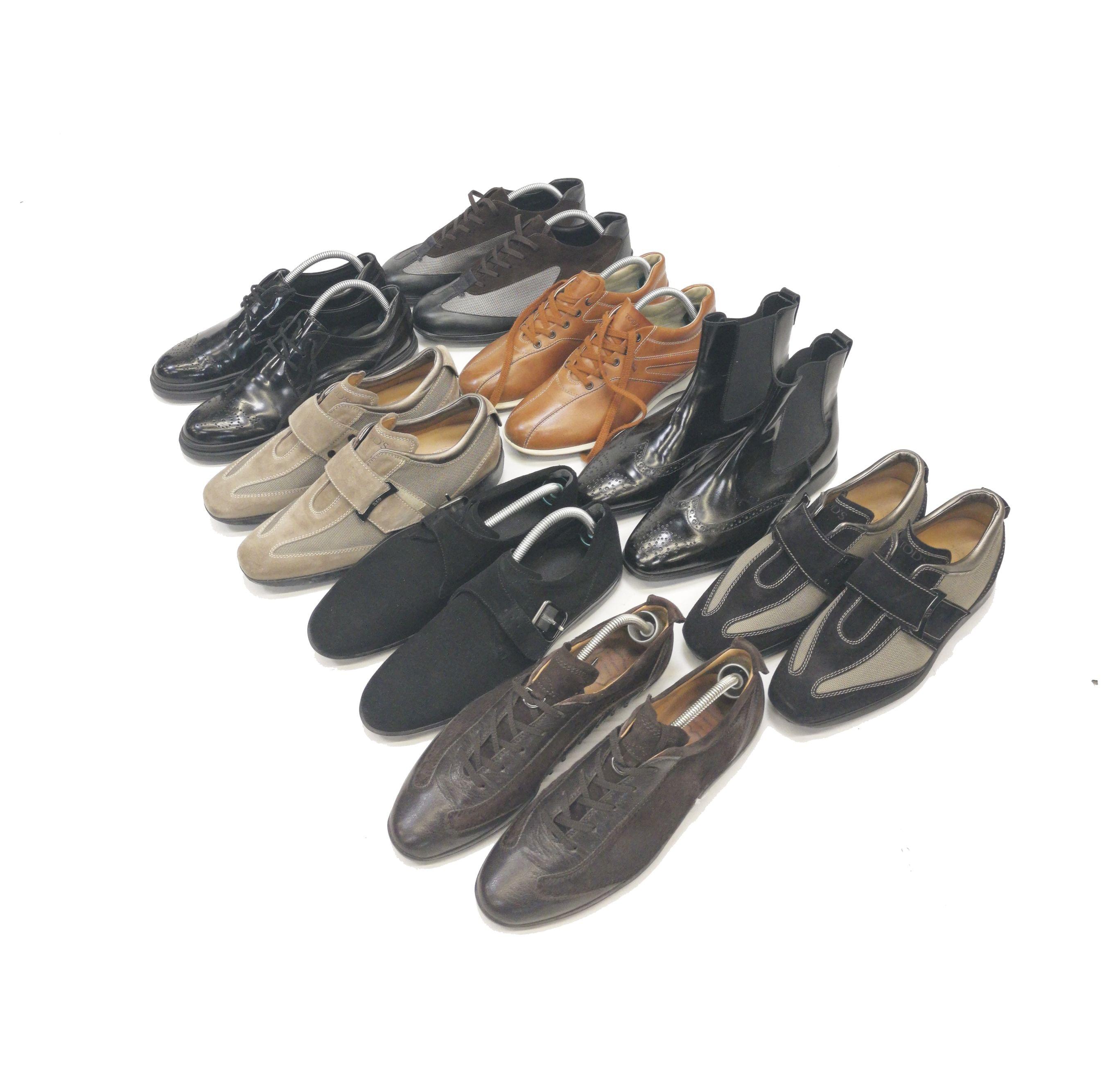 Cuir et daim marron et noir, T 39-40,5. Provenance: collection Pernet-Villaverde