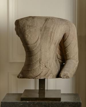 Laiton ajouré et ciselé, cadran aux chiffres romains, H 38 cm