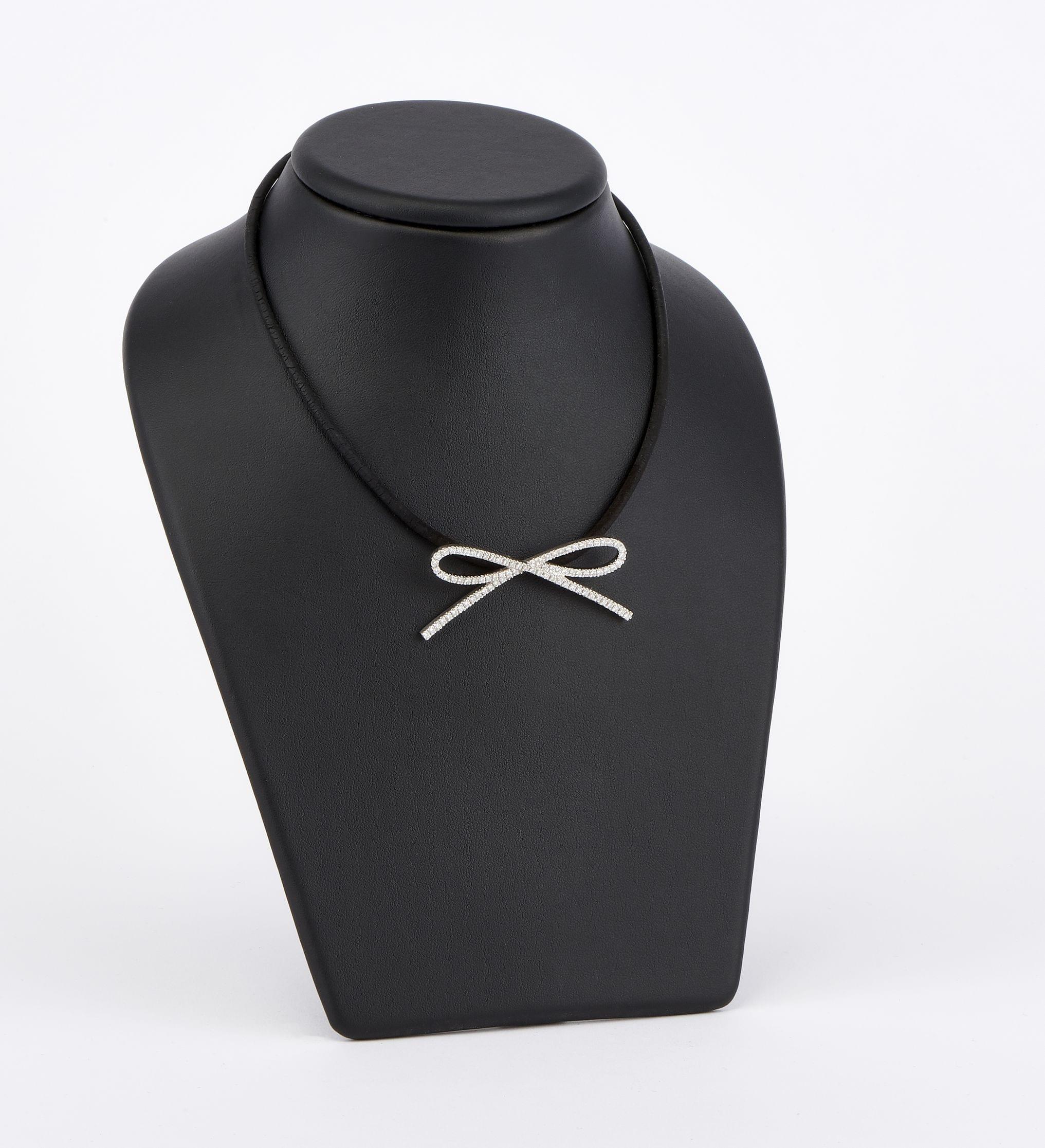 3225. Tour de cou à motif de nœud serti de diamants (env. 1,5 ct) sur cordon
