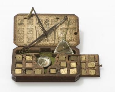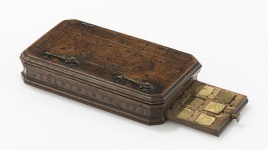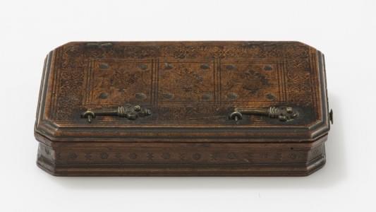 70. Coffret formant encrier en filigrane dessinant des motifs d'arab...
