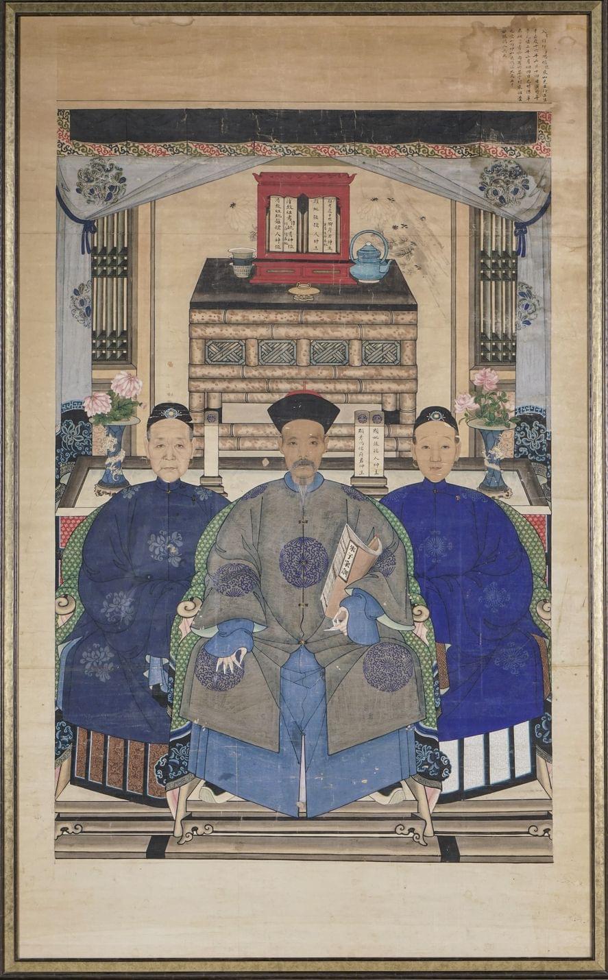 885. Triple portrait d'ancêtre, Chine, fin de la dynastie Qing (1644-1912)