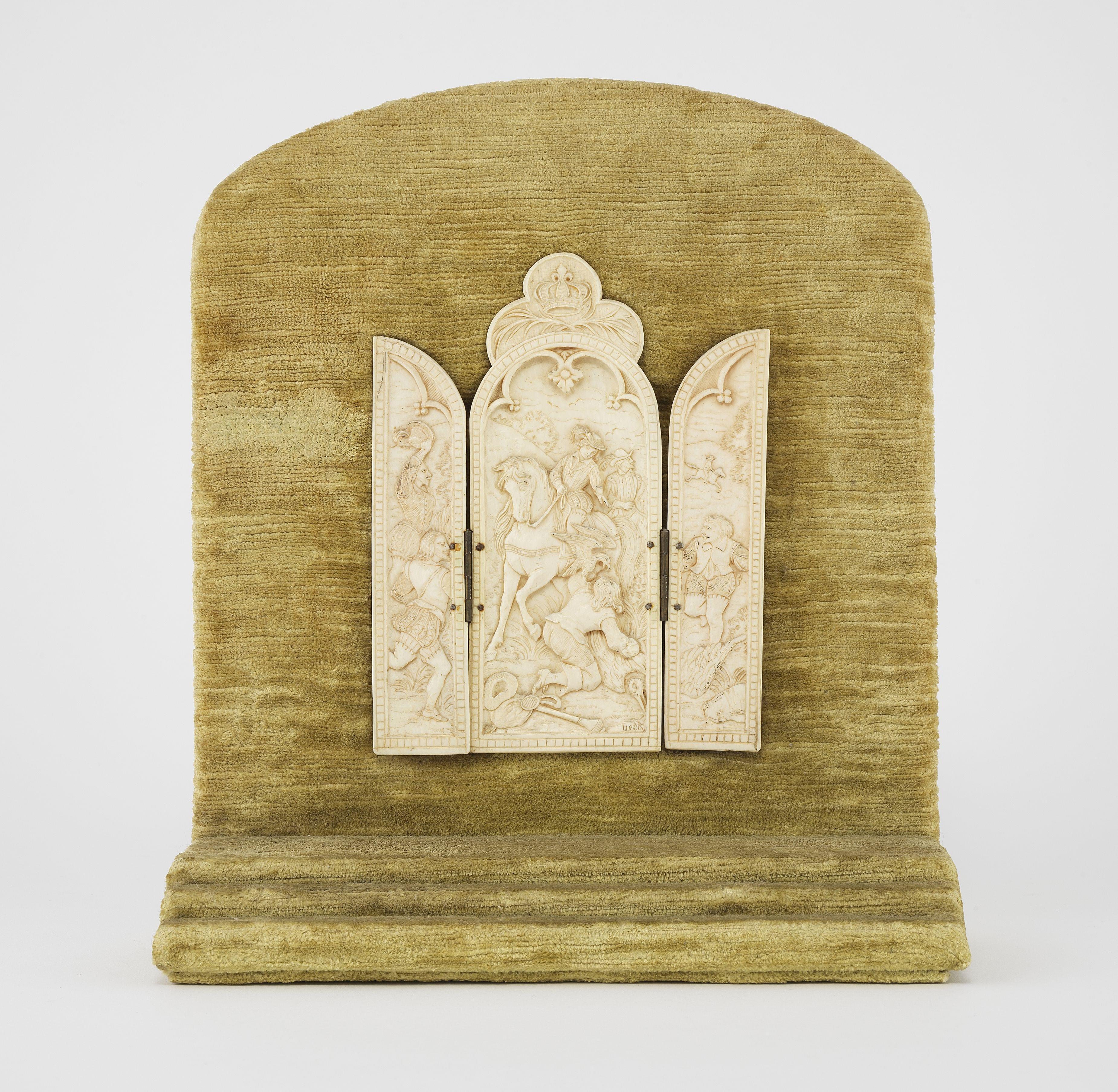 4394. Triptyque à décor d'une scène de troubadour, circa 1900