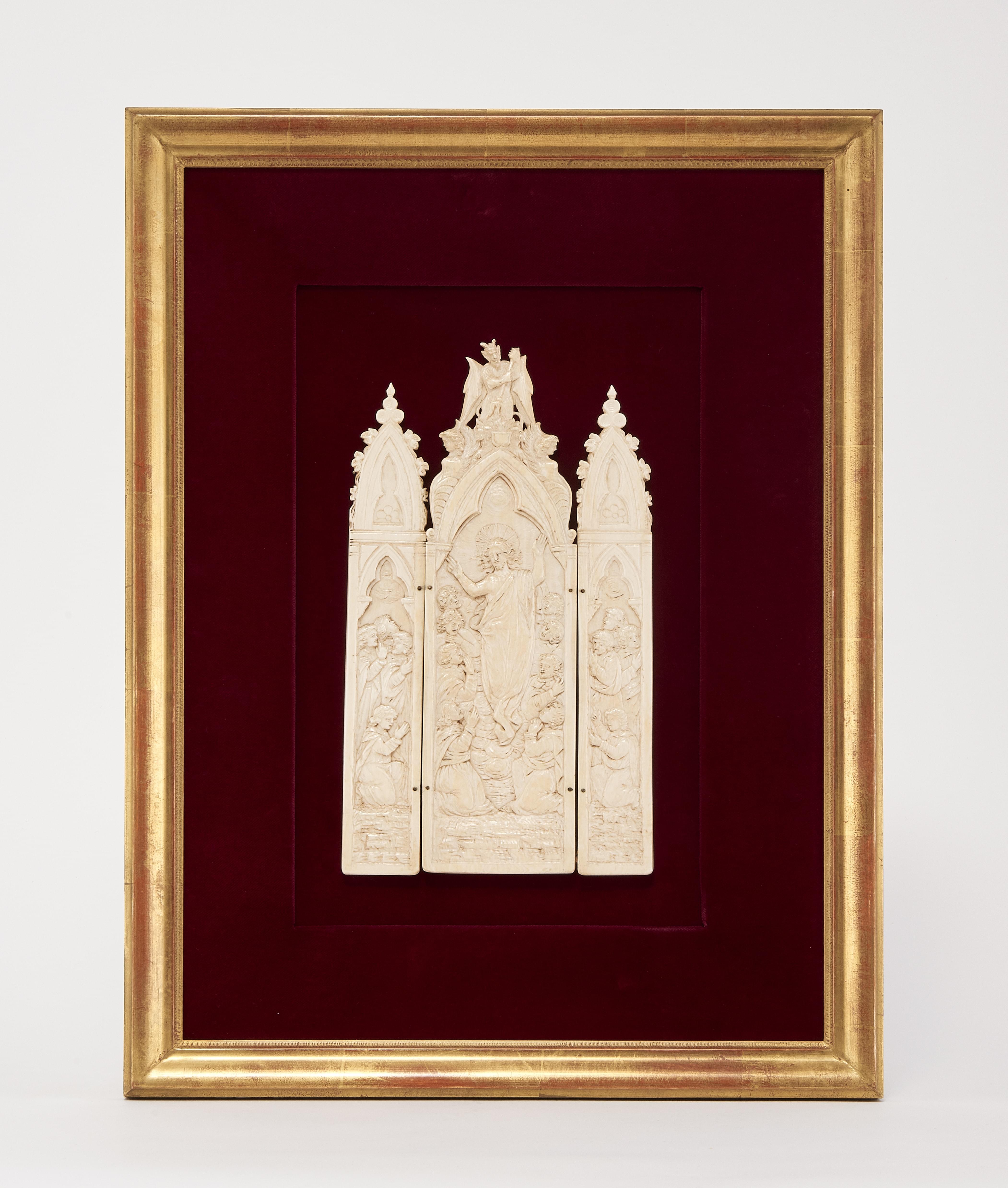 Ivoire sculpté à décor du Christ rédempteur, 24x14 cm
