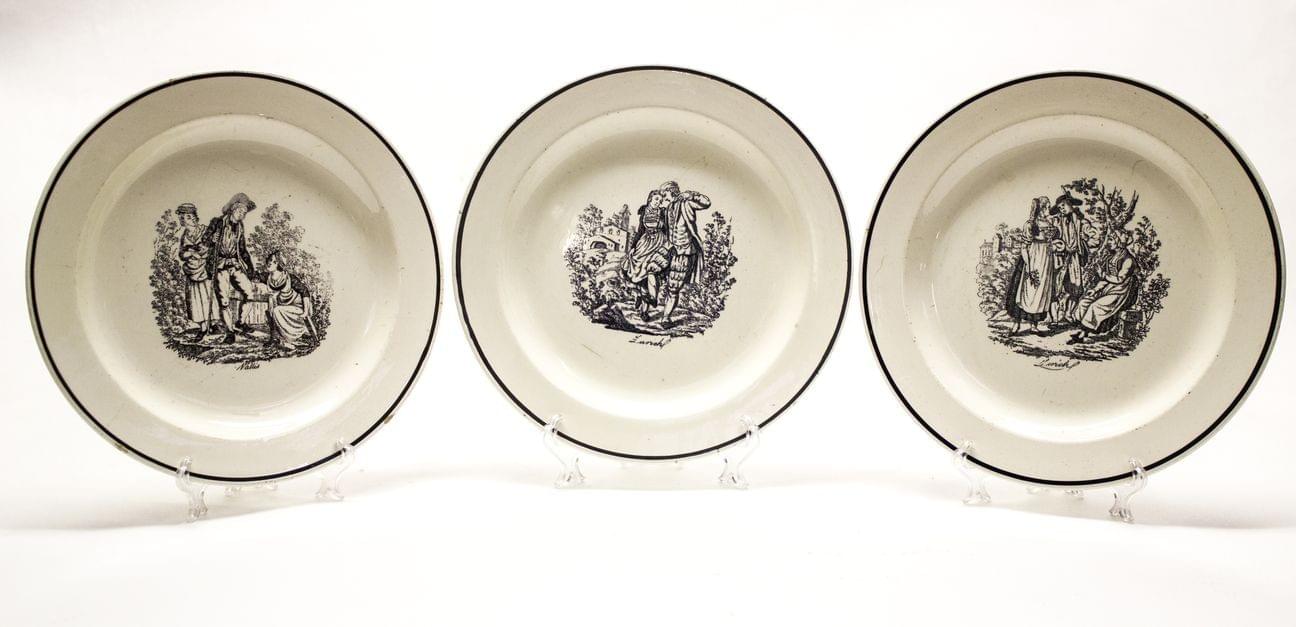 3244. Trois assiettes à décor de personnages des cantons de Zurich et du Valais
