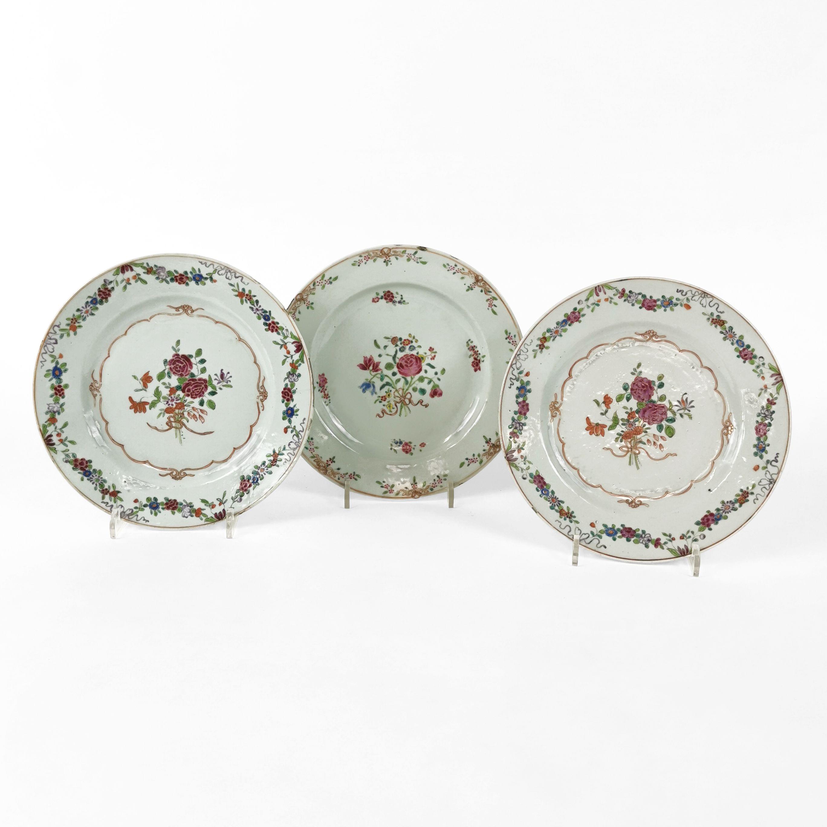4892. Trois assiettes, Chine, Compagnie des Indes, XVIIIe s