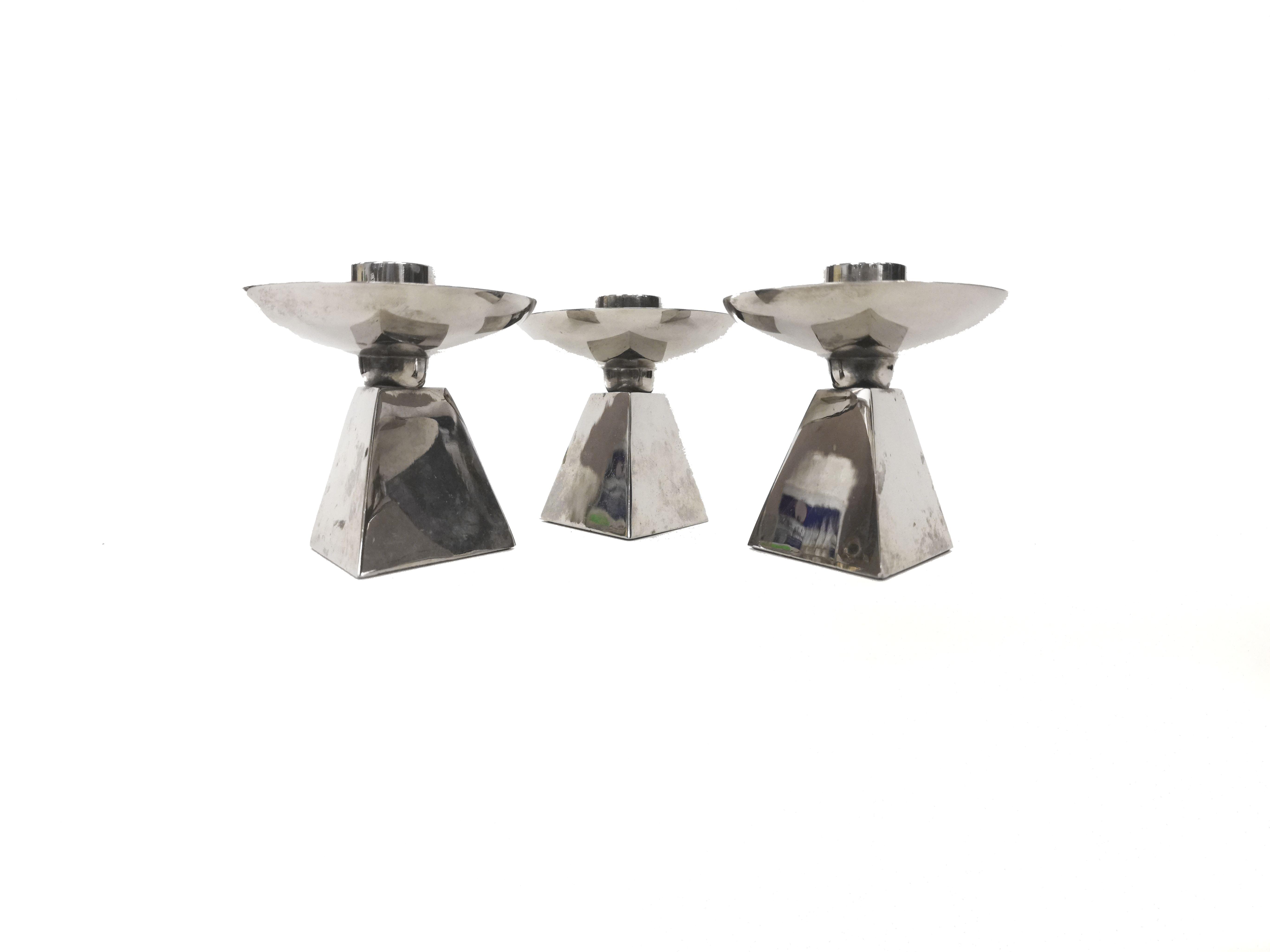 55. Clip de corsage géométrique serti de trois diamants taille ancie...
