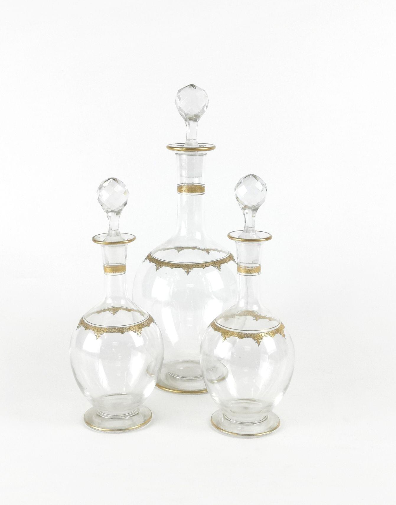 Bois laqué or et métal, H 12, 17 et 22 cm.