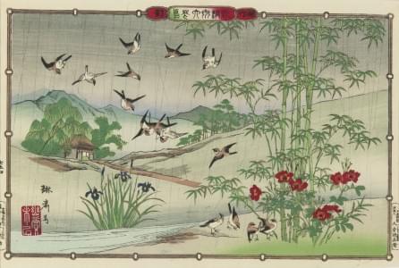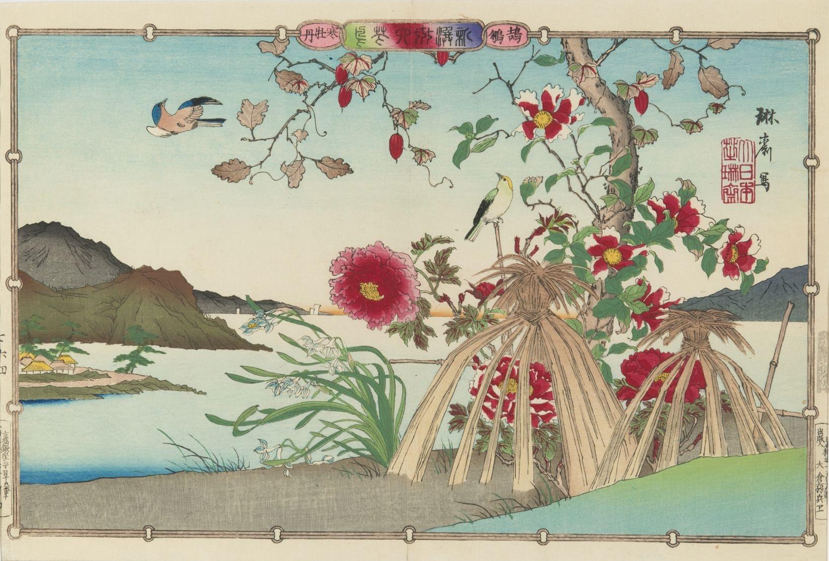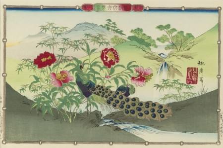 A décor d'oiseaux et de fleurs, signées, Japon, milieu XIXe s, 23x34 cm