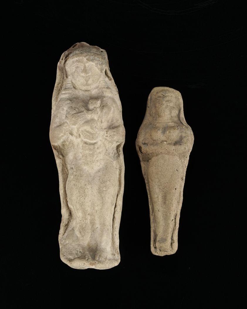 Figurant des femmes tenant leurs seins, argile, H 14, 19 et 16,5 cm. On joint deux figurines féminines, Proche-Orient, VIIe-VIe s av. JC, argile, H 8 et 11 cm. Provenance: Collection privée suisse