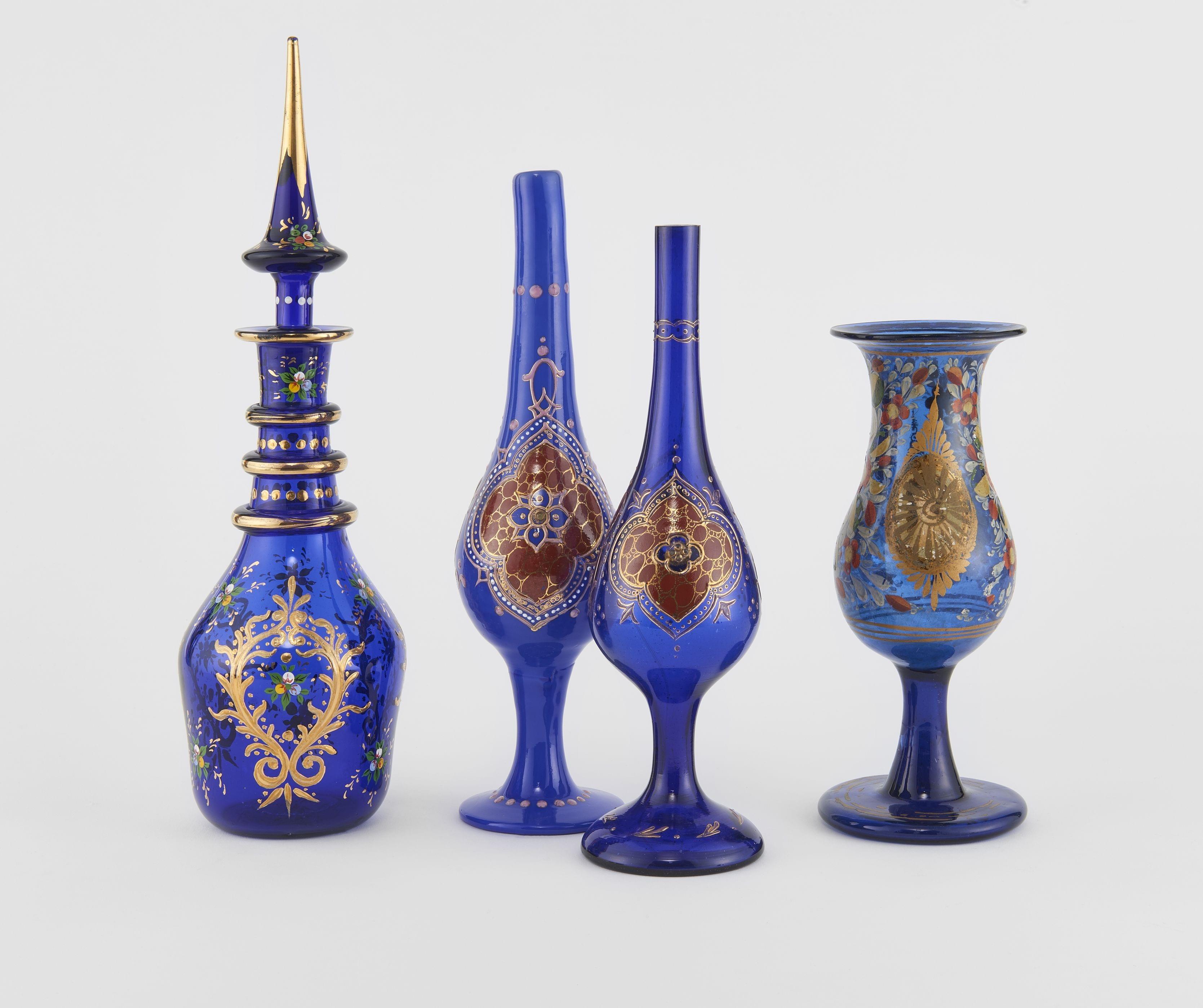 Verre et piètement en métal à patine dorée, 75x208x140 cm. Figur...