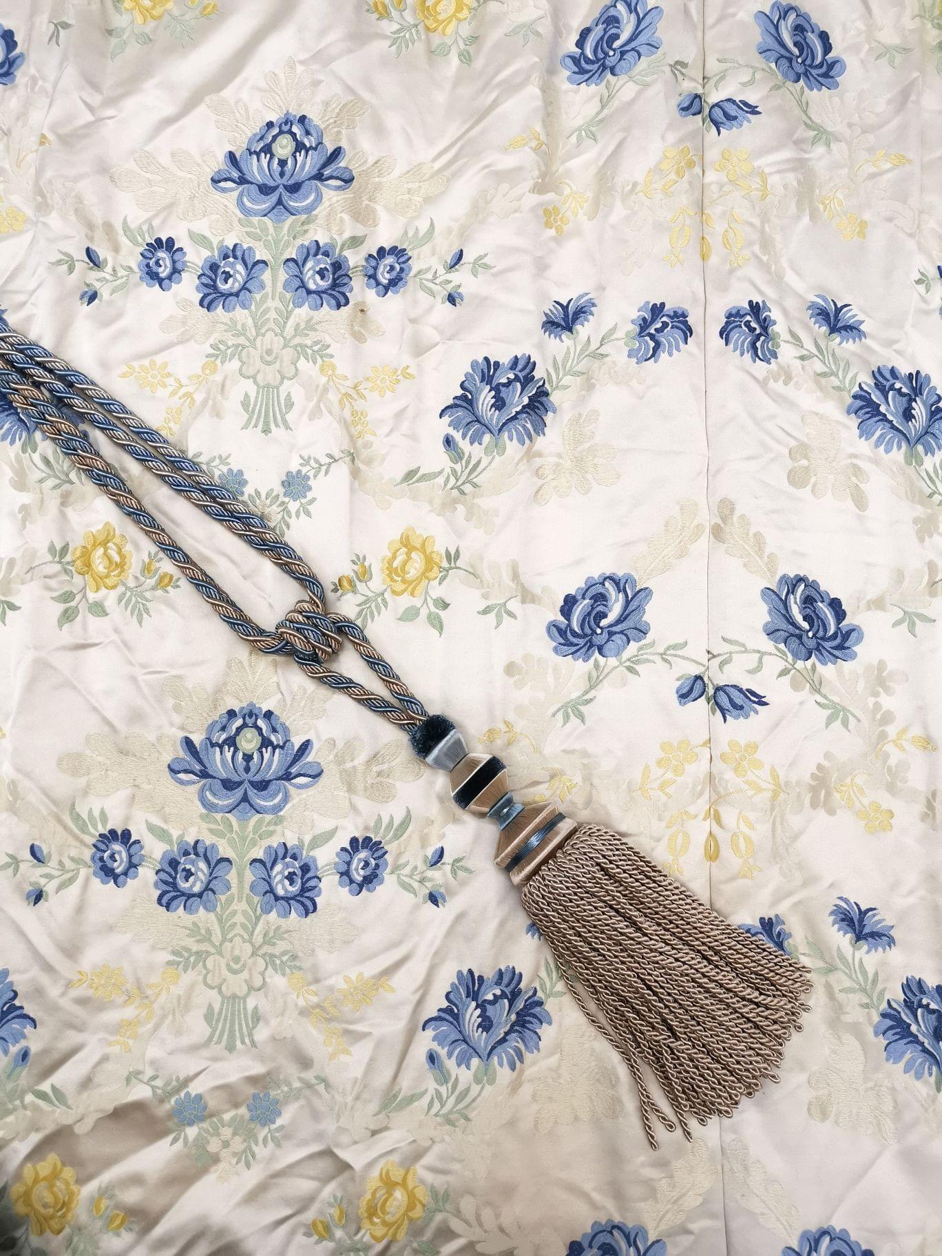 Soie brodée de fleurs bleues, 280x95 cm. Provenance: collection Pernet-Villaverde