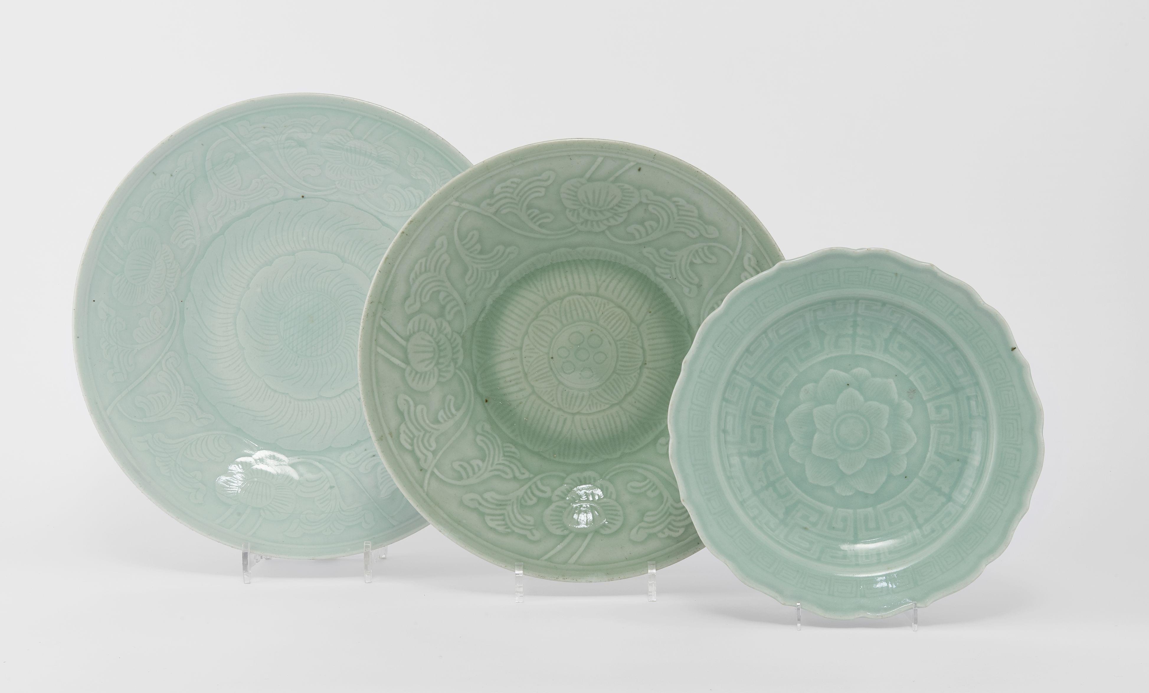 641. Trois plats céladon, Chine, XXe s