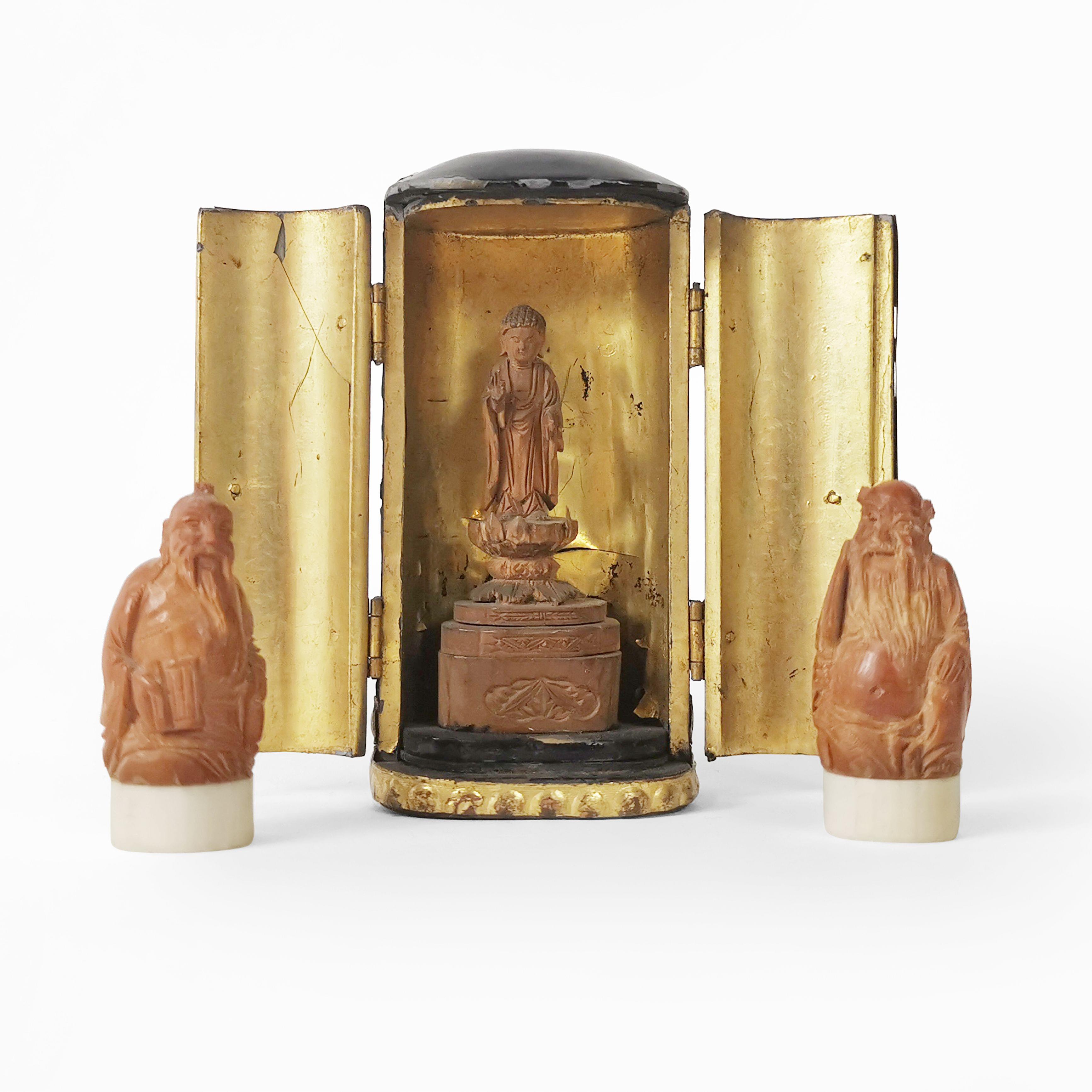4688. Trois statuettes figurant un Bouddha et deux immortels, Japon et Chine