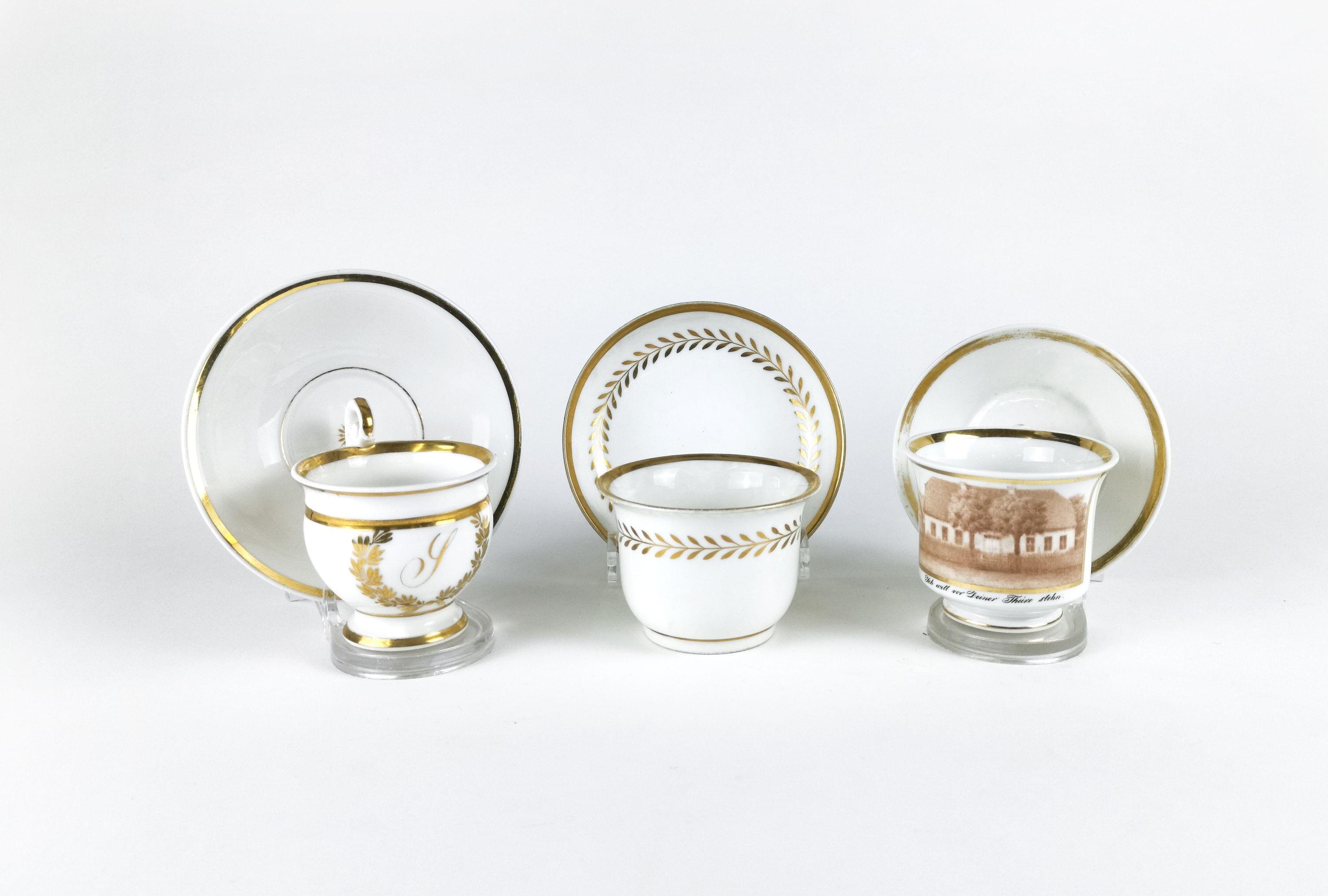 4482. Trois tasses blanches et or