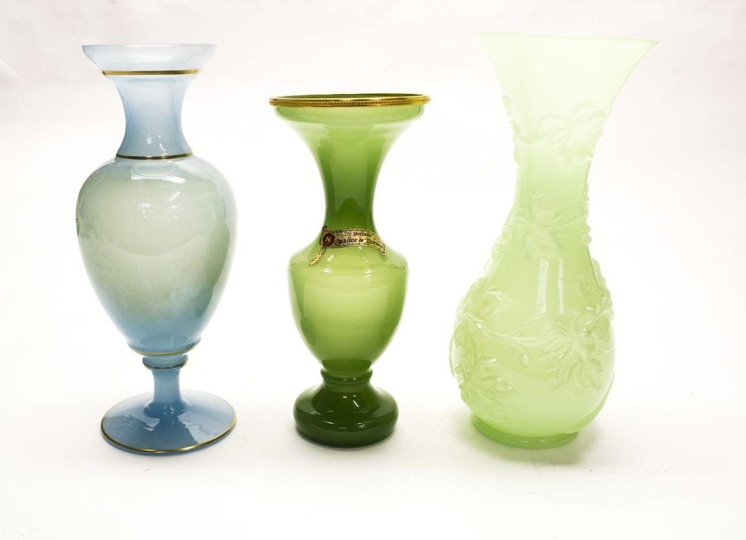 Opaline, turquoise, jade et menthe, H 22 à 26 cm