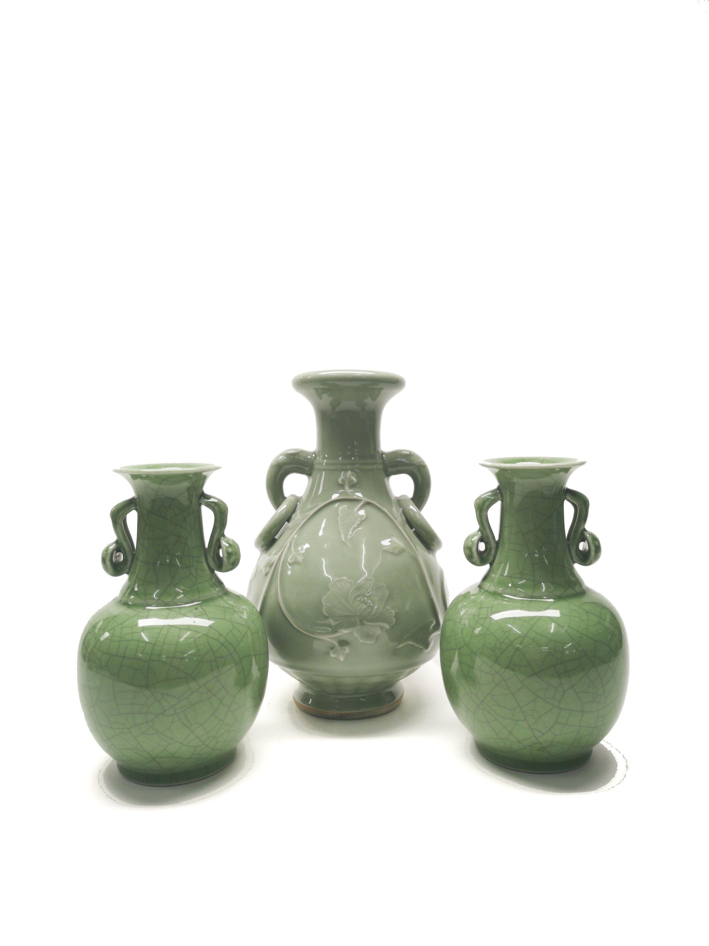 3821. Trois vases céladon, Chine, époque contemporaine