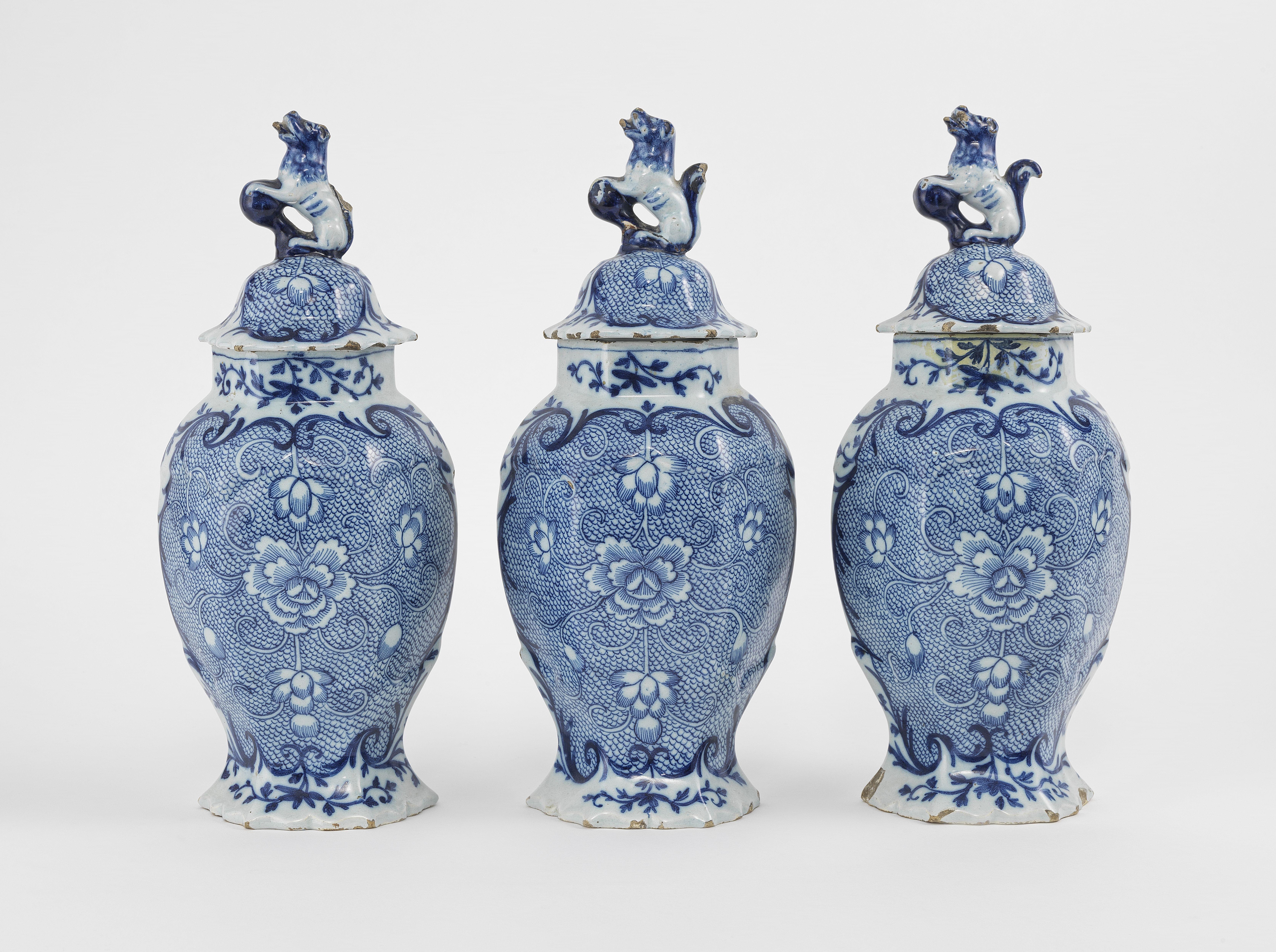 4156. Trois vases couverts, Delft, XVIIIe s