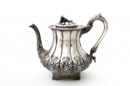 600. Service à thé d'époque George IV à décor repoussé et ciselé de f...