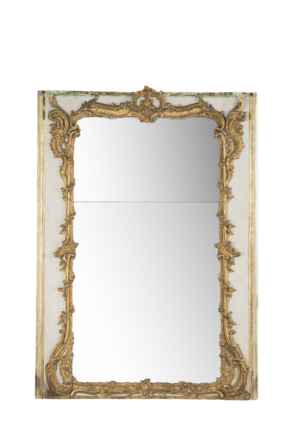 Bois laqué beige rechampi or à moulure mouvementée rocaille, 183x130 cm