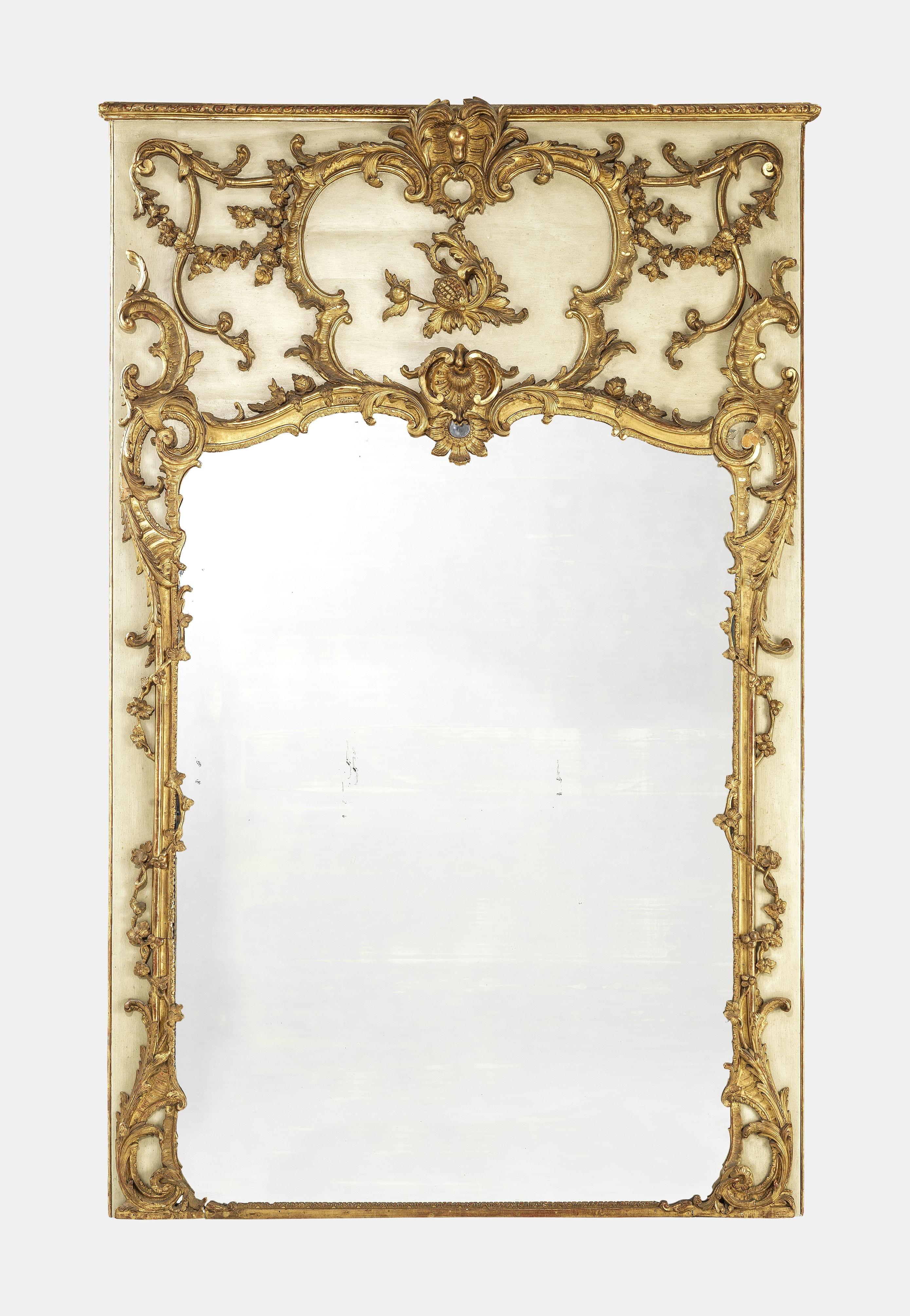 Bois sculpté et doré sur fond crème, à motif rocaille, 212x64 cm