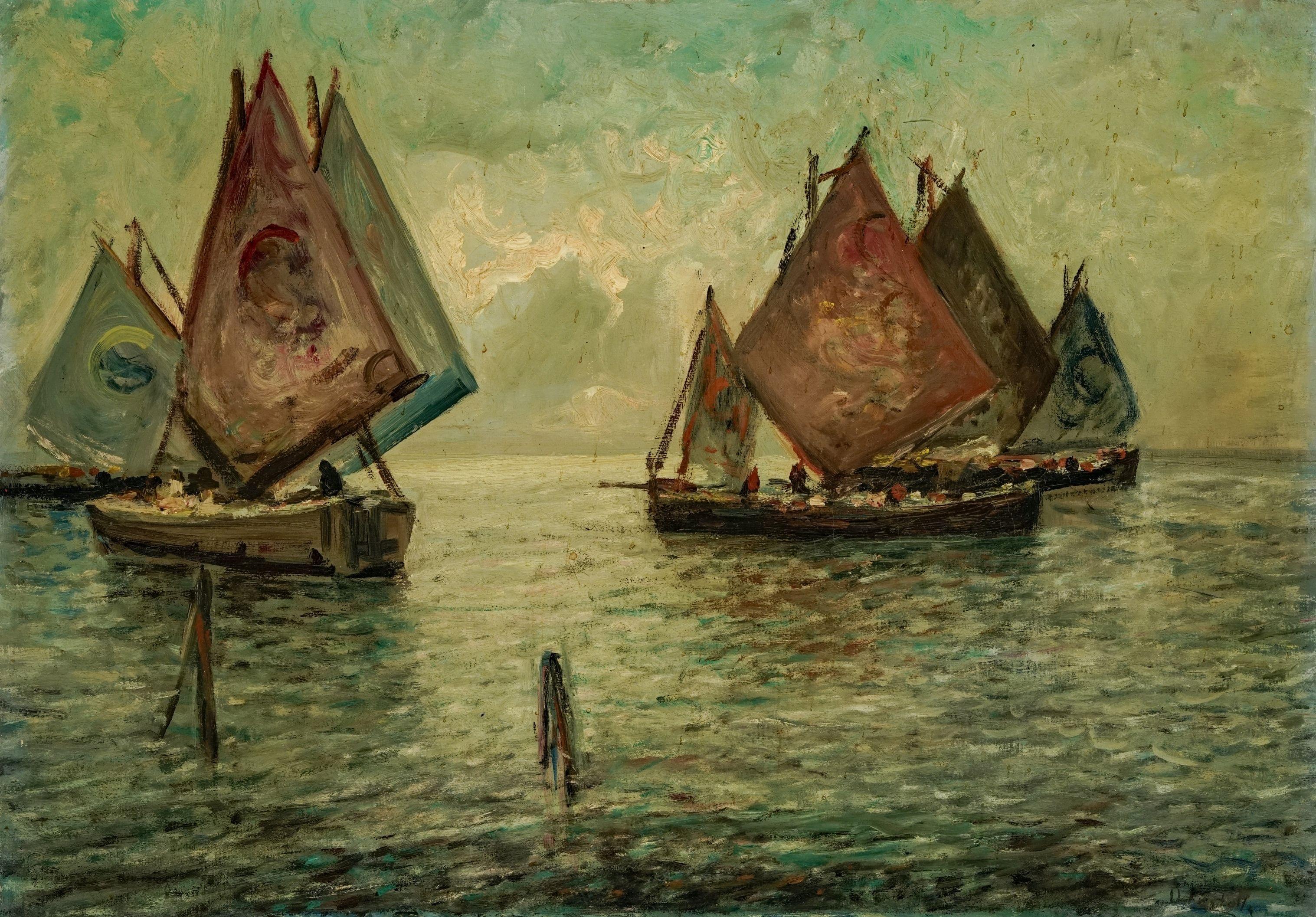 Coucher de soleil en Adriatique (Tramonto Adriatico), huile sur toile, signée, 49x69 cm. Provenance: Galeria Luigi Bozoni, Milano