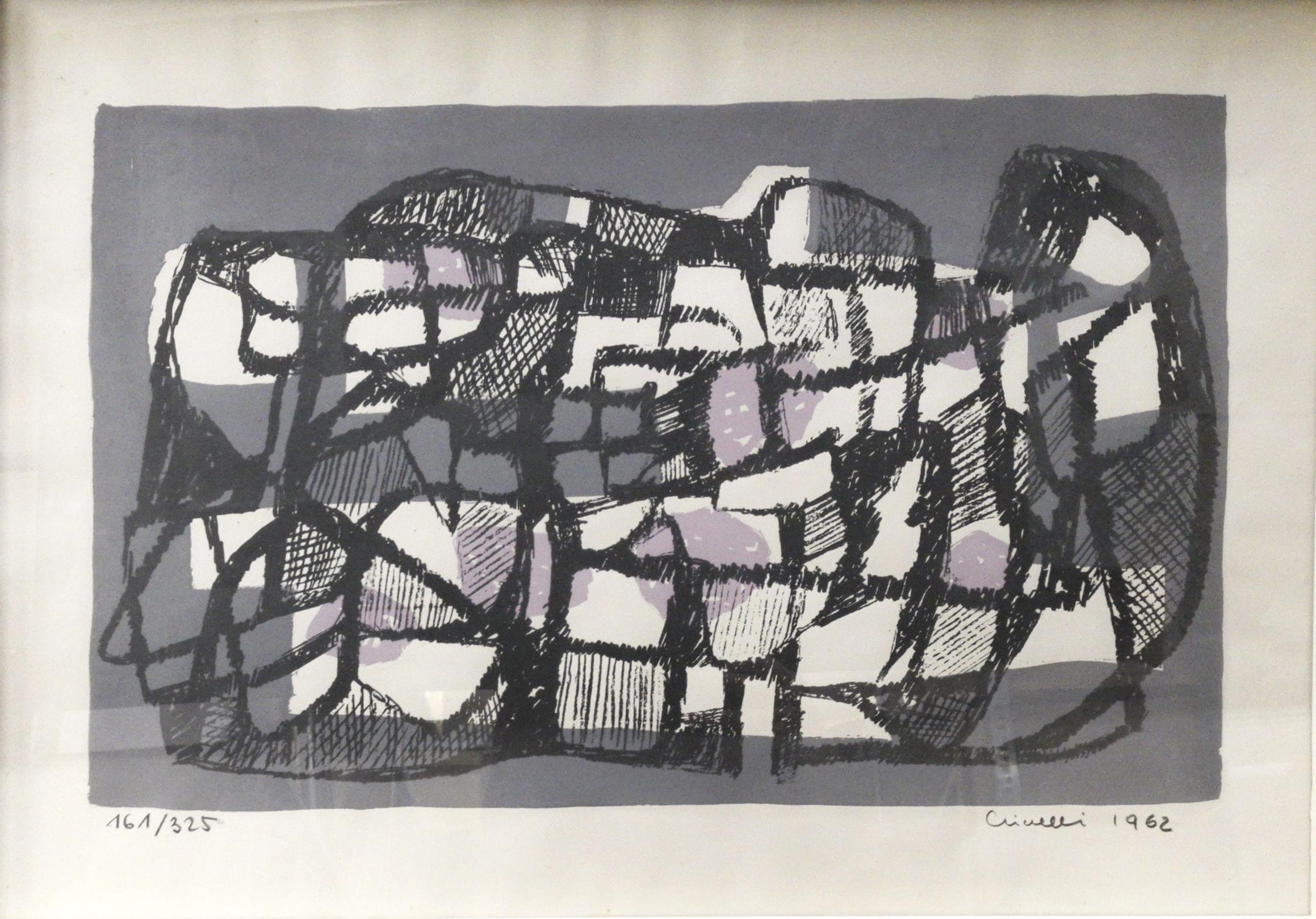 Sans titre, estampe, signée, datée 62 et numérotée 61/325, 49x69 cm. Provenance: collection Pernet-Villaverde