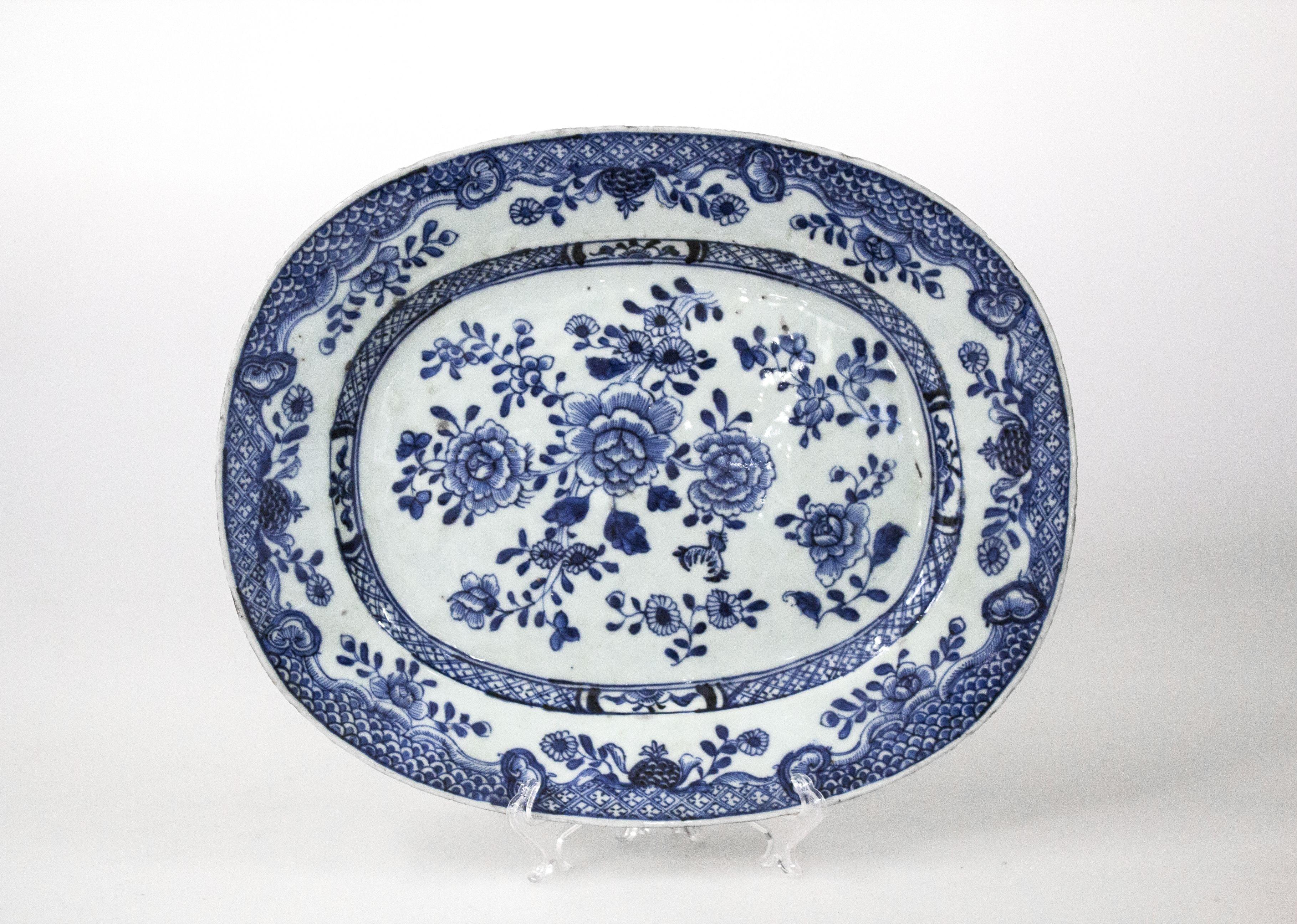 Porcelaine bleu blanc à décor de fleurs, L 30 cm