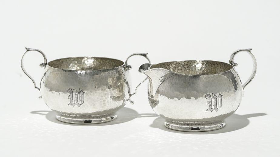 208. Crémier d'époque George III à motif de fleurs et volutes, anses...
