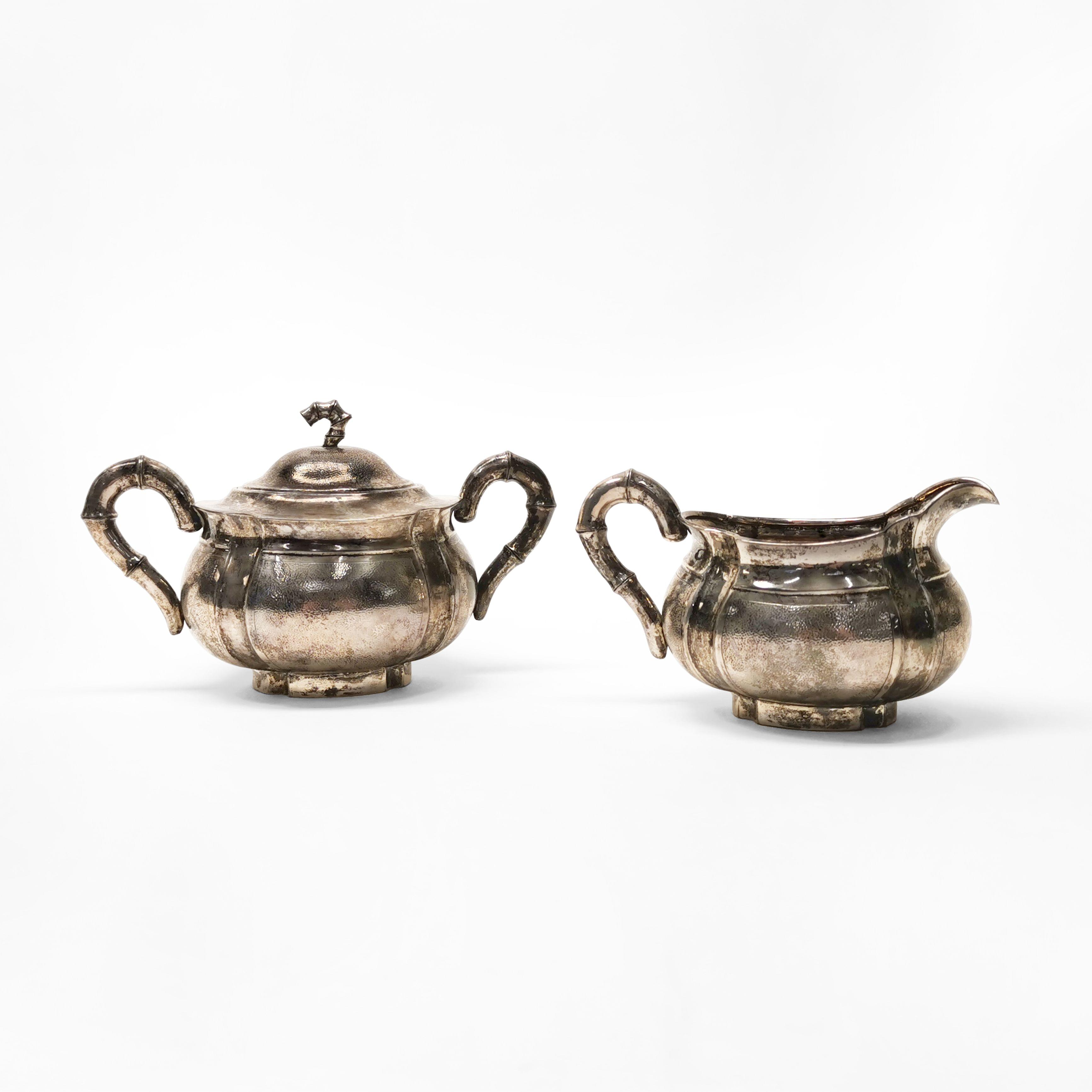 3853. Verseuse, pot à lait et saucière à motif de fleurs et volutes