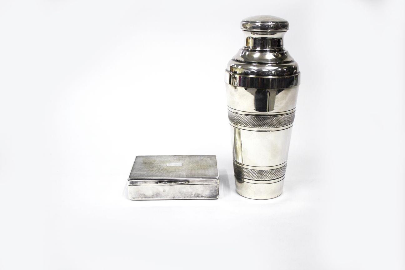 3246. Une boîte à cigarettes et 1 shaker à motif guilloché
