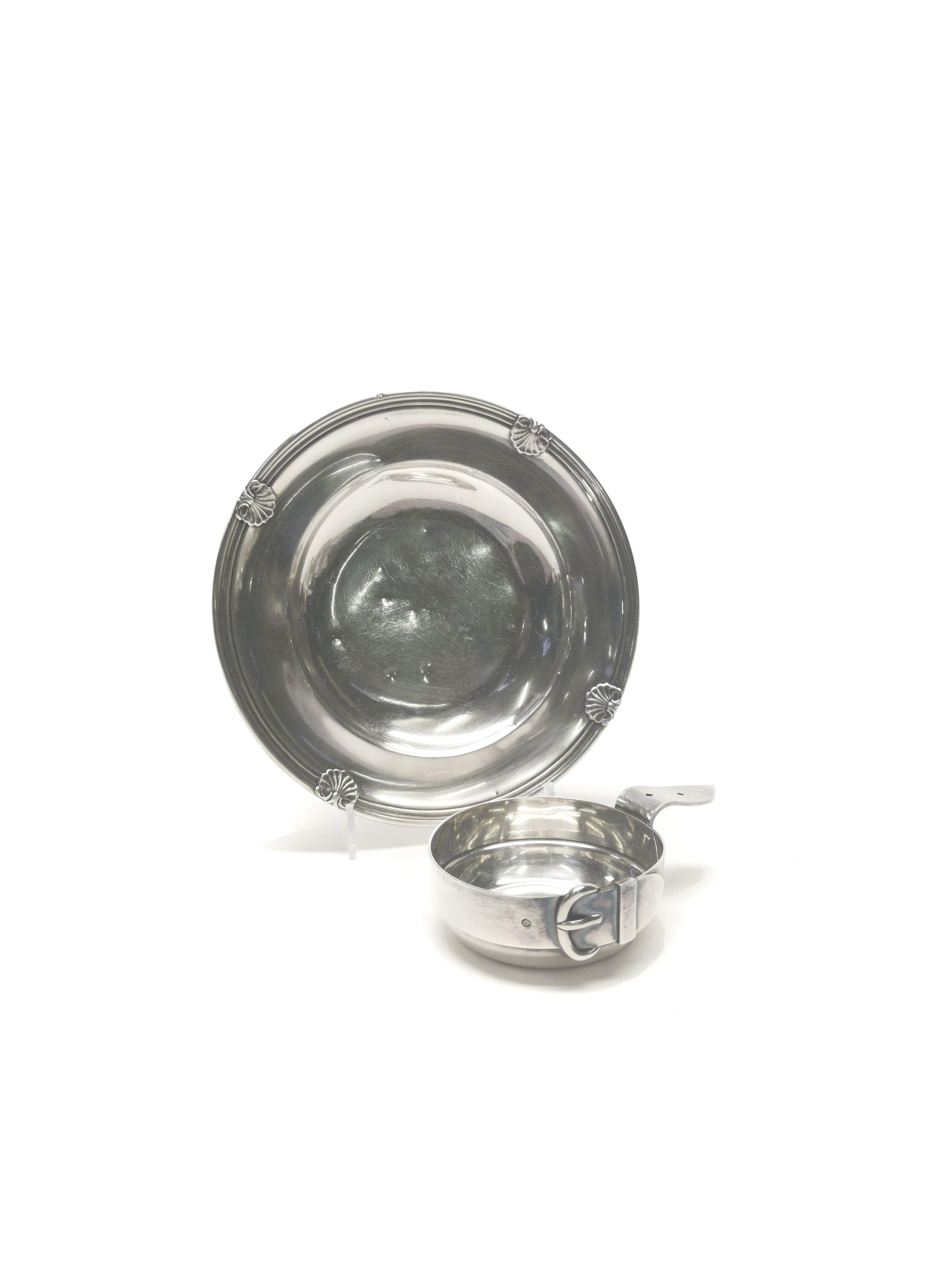 3707. Une coupelle Odiot à motif de coquille et un taste-vin Hermès