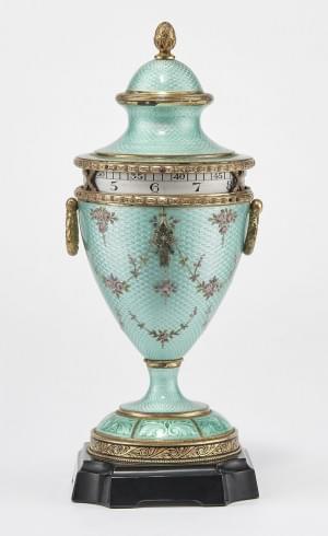 Métal émaillé vert à décor de fleurs, H 18 cm