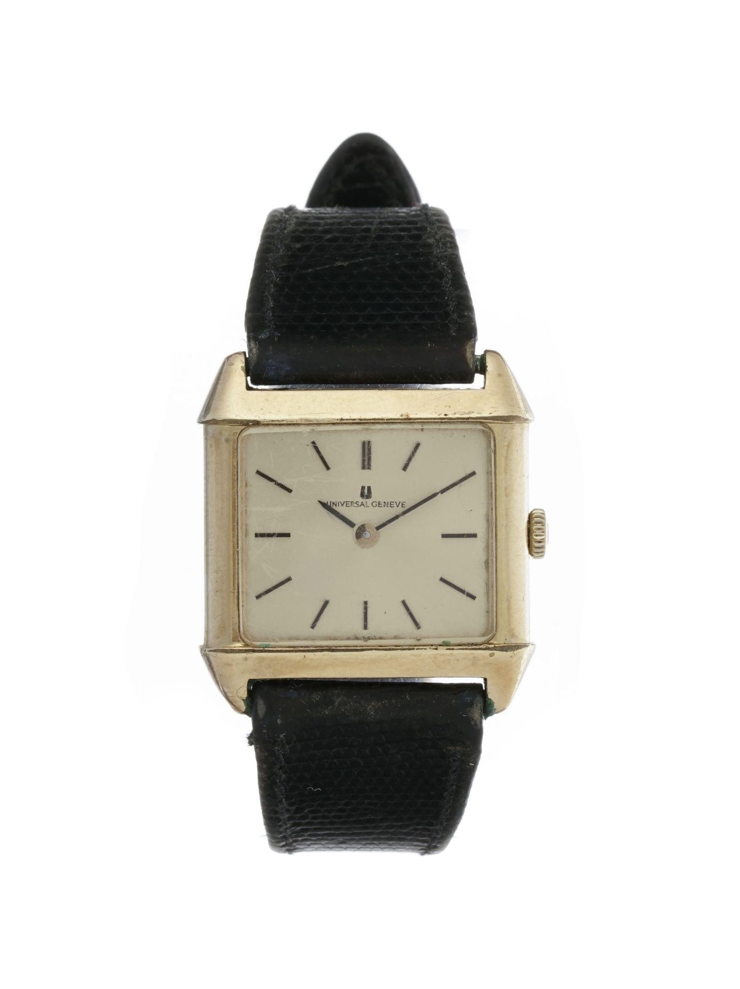 Cadran doré, aiguilles et index bâton noirs, métal doré, 22x25 mm