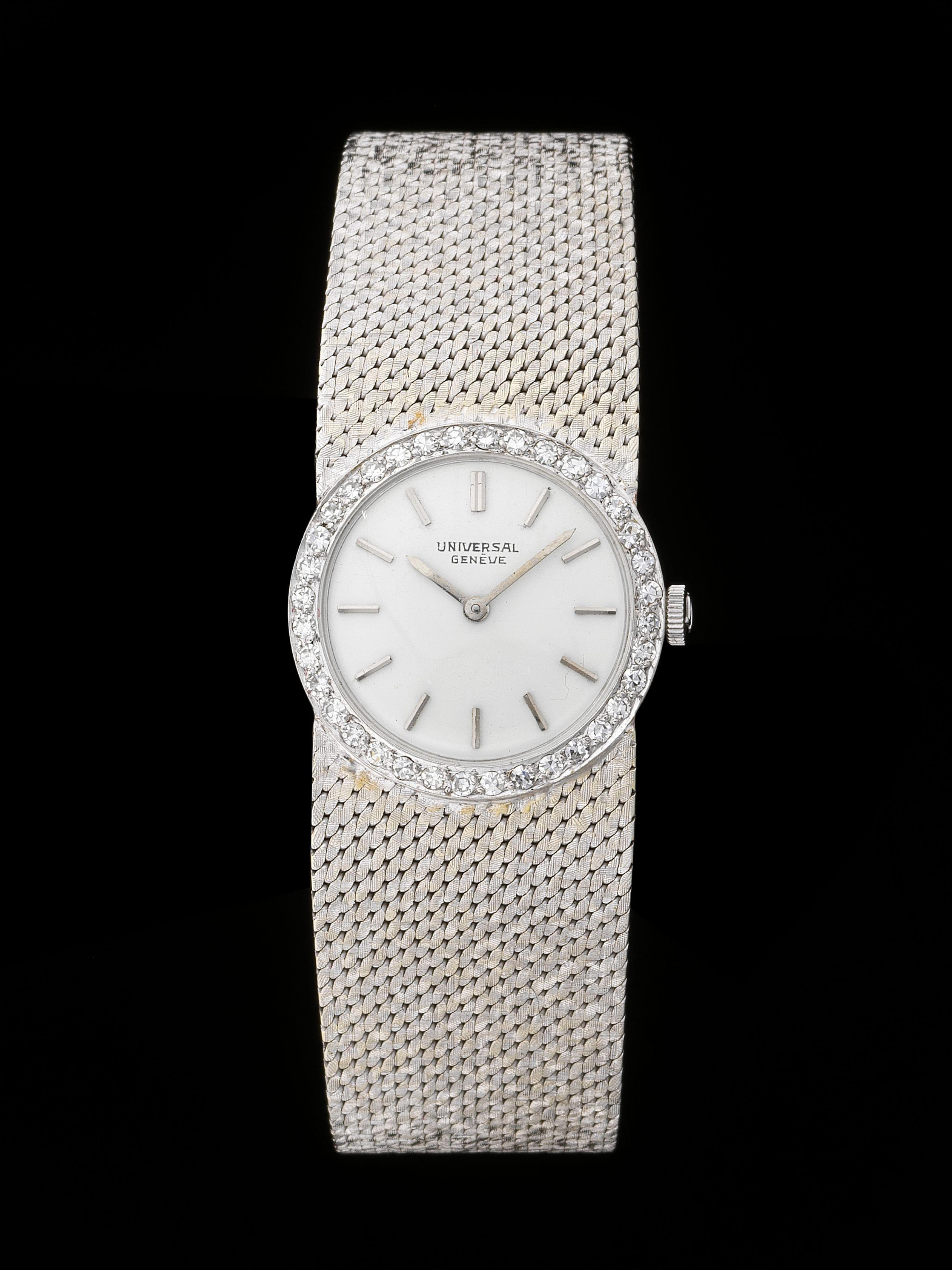 1. Omega, montre-bracelet ronde mécanique entièrement pavée de diam...