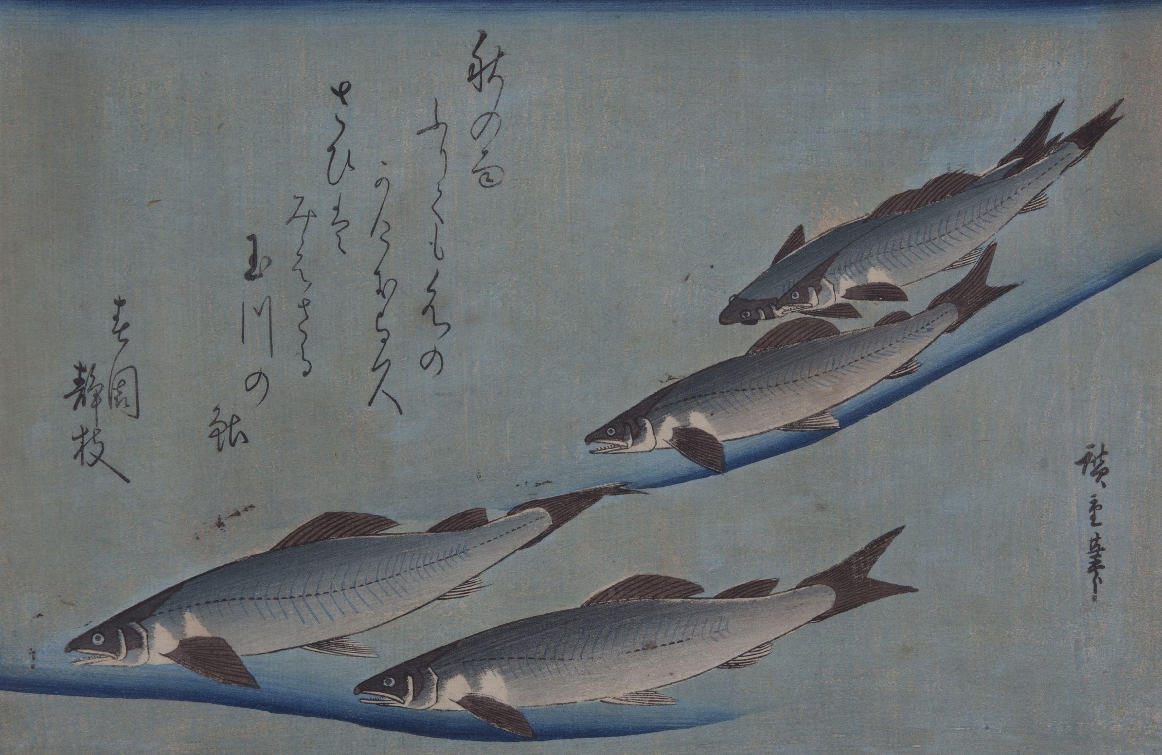 Konoha-Garei - kanagashira et ayu, deux estampes de la série Uwo-zukushi (des grands poissons), bois gravés, circa 1832, 24x35 cm. Provenance: M, Nakazawa à Tokyo. Collection David Sassoon