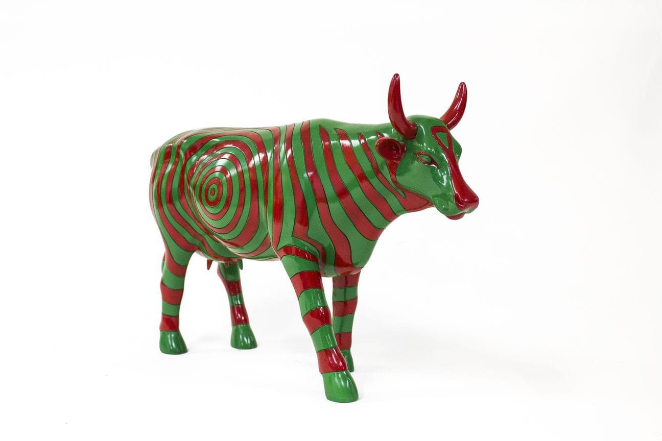 Résine à décor de cercles et rayures rouges sur fond vert, L 32 cm