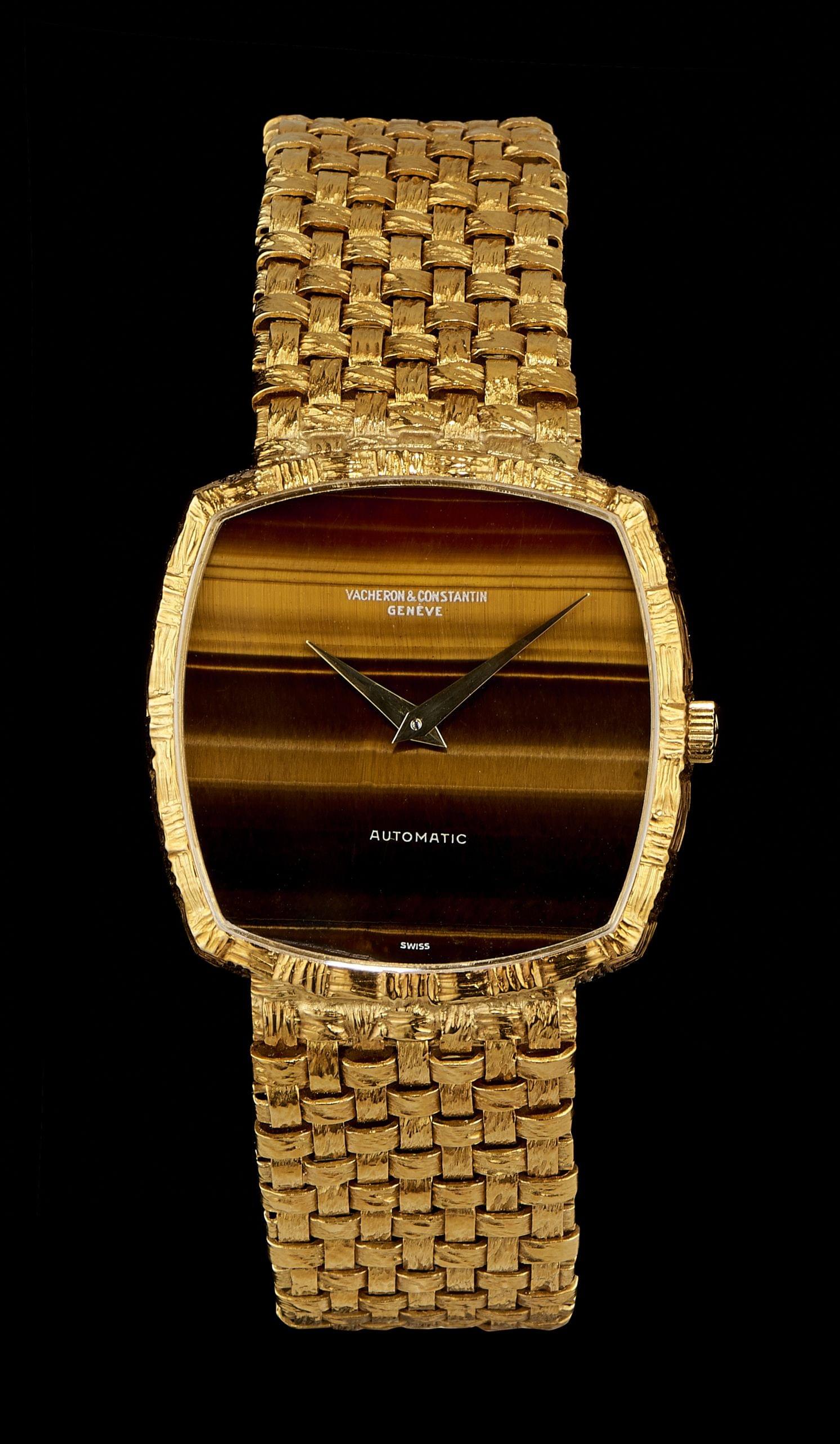 Cadran œil de tigre, aiguilles dorées, or 750, D 33 mm, L 17 cm,...