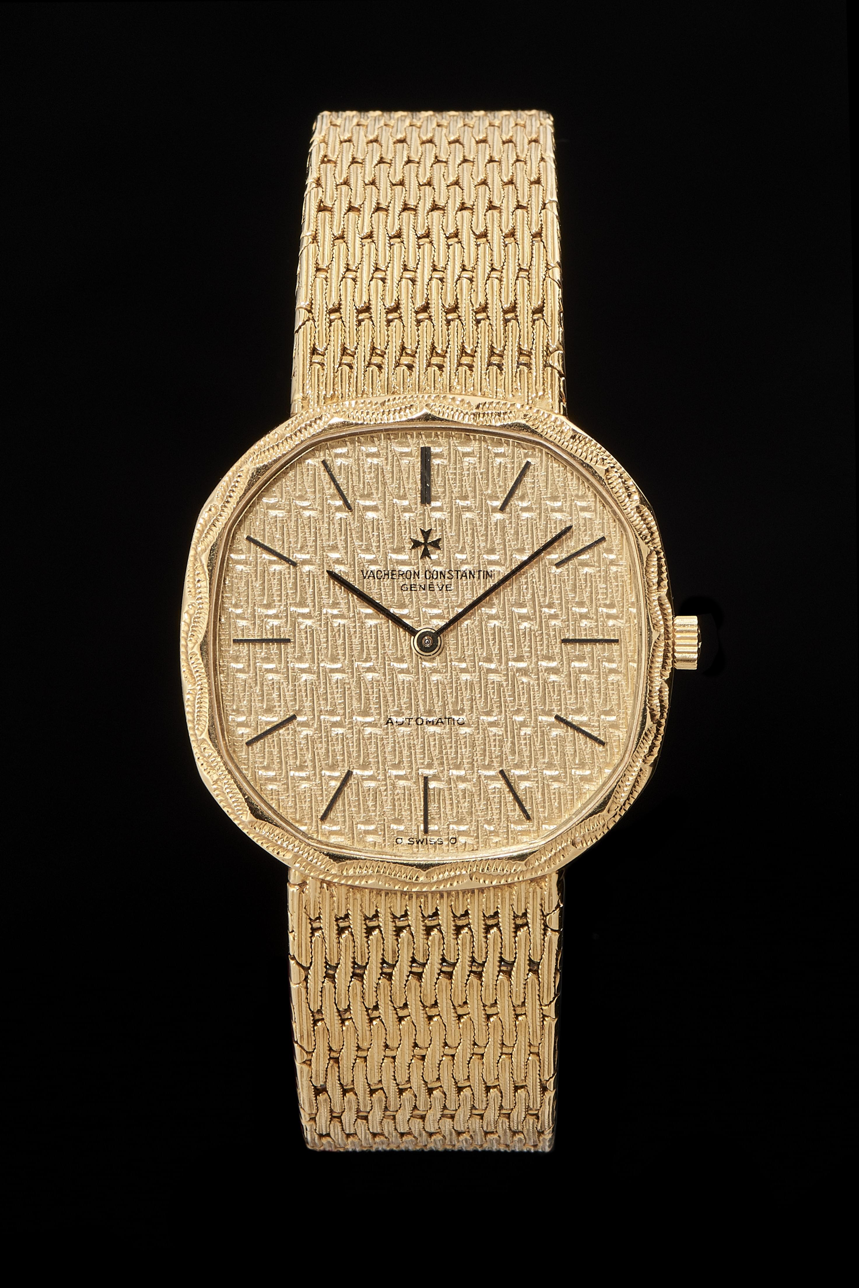 Cadran gris guilloché, aiguilles dorées, chiffres romains bleu c...