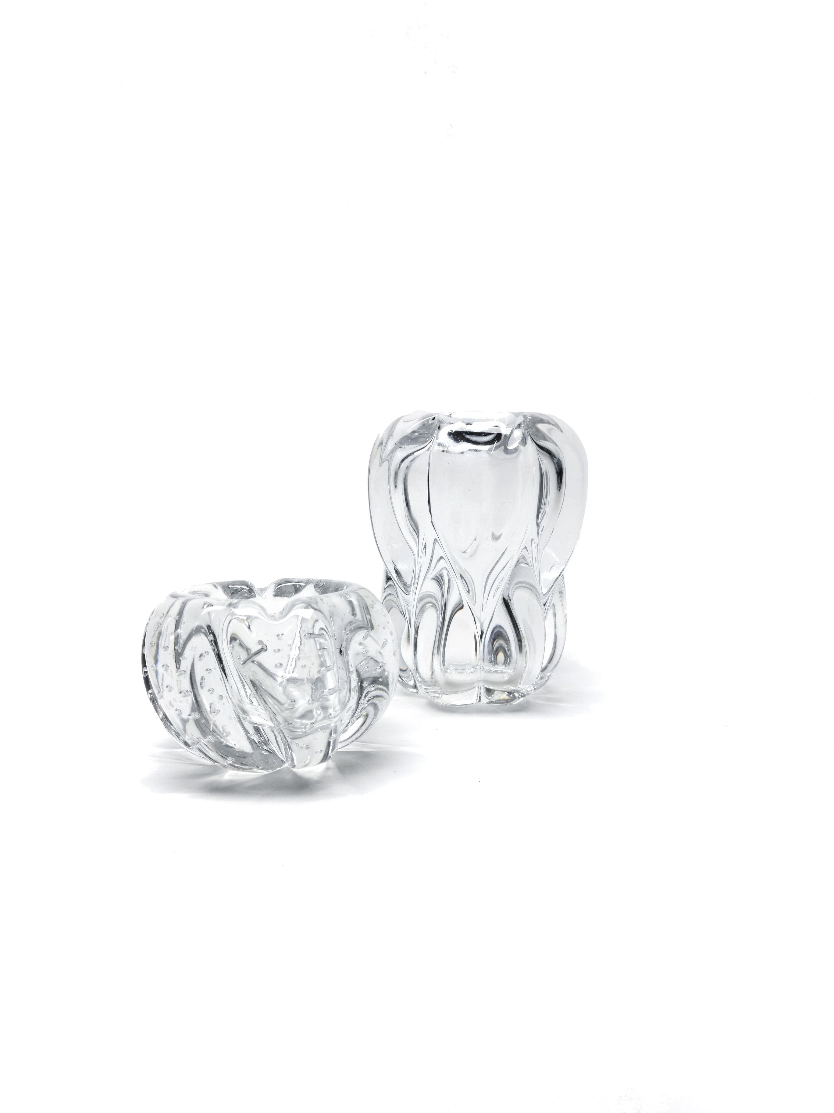 Vase et vide-poche, verre translucide, H 16 et 8 cm