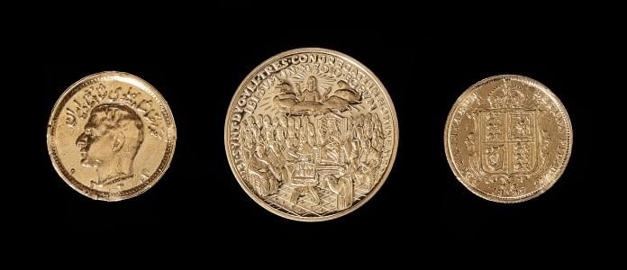 Or 900, 10 g. On joint une pièce orientale en or, 4 g et 1/2 sou...