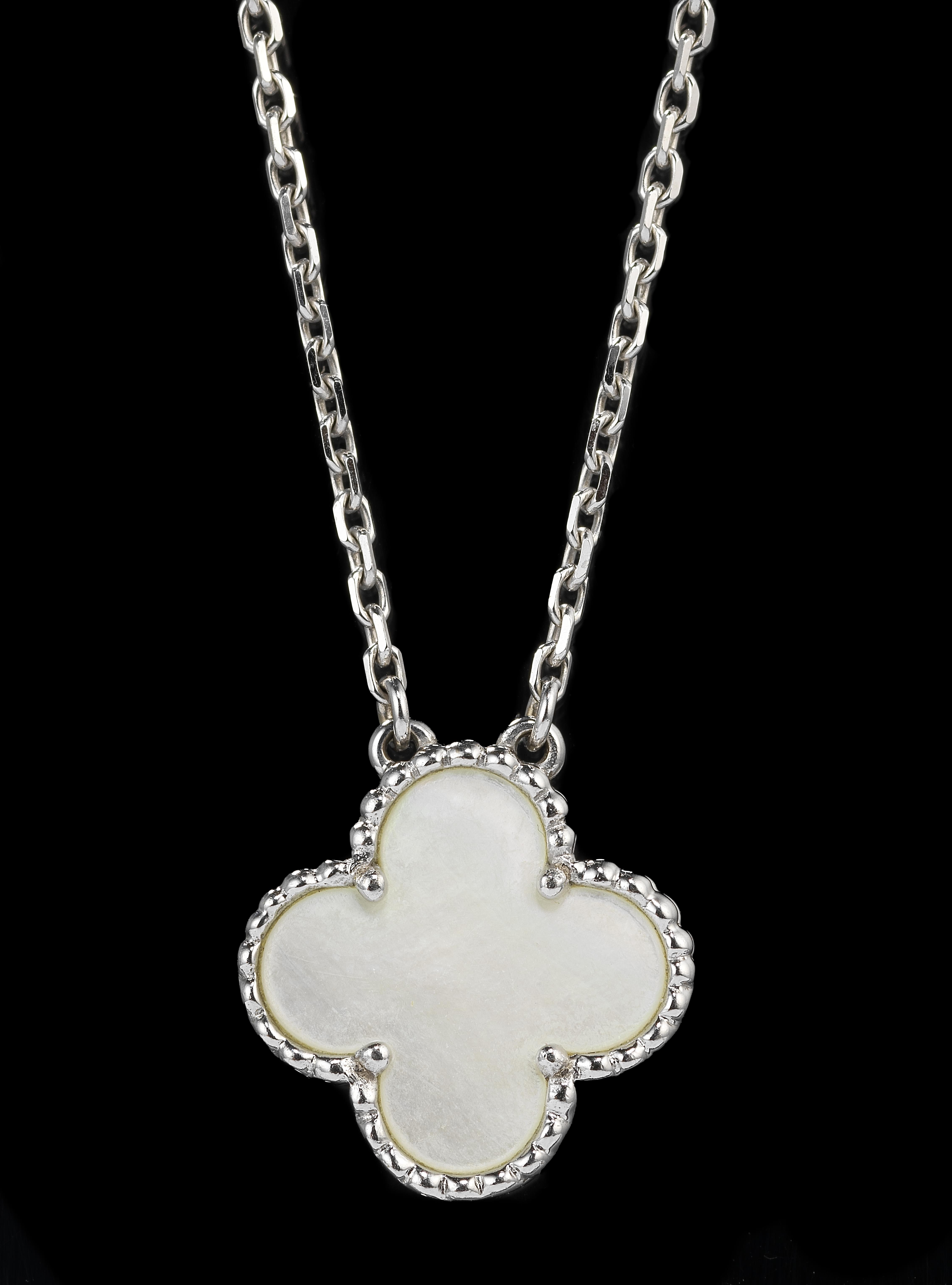 121. Van Cleef and Arpels, Alhambra, chaîne retenant un trèfle quadrilobé en nacre entouré d'un décor de granulation