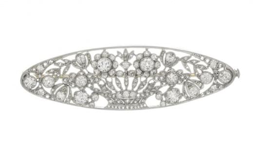 215. Broche ovale à motif de panier fleuri serti de diamants taille a...