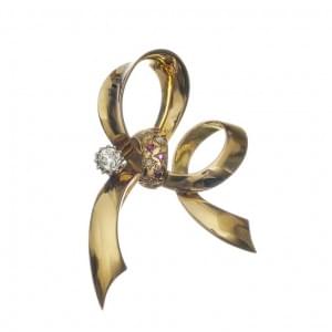 217. Broche nœud sertie d'un diamant taille ancienne (env. 0.5 ct) ép...