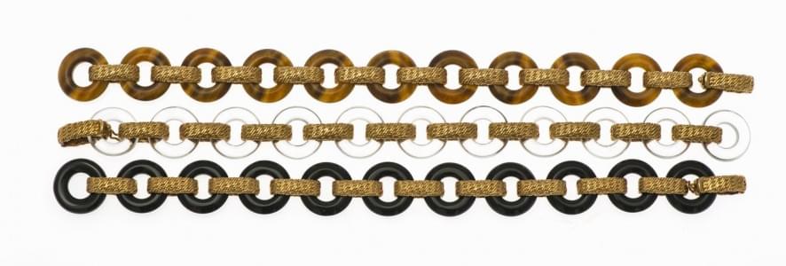 177. Bracelet trois ors formé d'une alternance de mailles de chaque o...