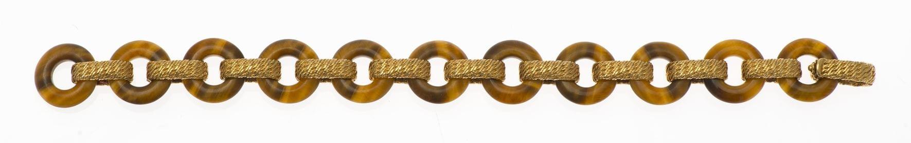 177. Bracelet trois ors formé d'une alternance de mailles de chaque o...