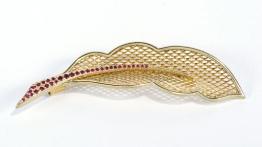 131. Van Cleef & Arpels, broche plume sertie de rubis
