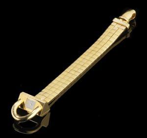 Cadran nacre, aiguilles dorées, or 750, 33x31 mm, L 18 cm, poids...
